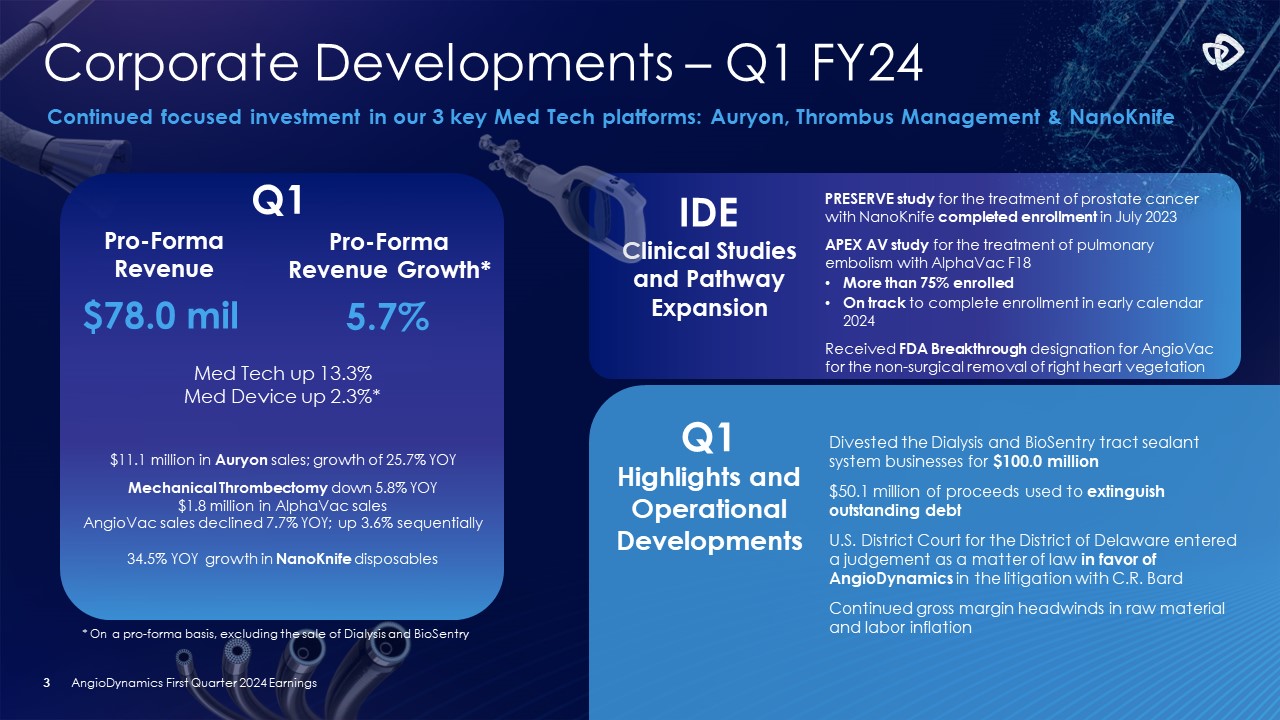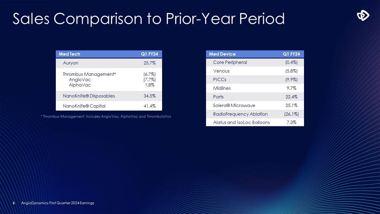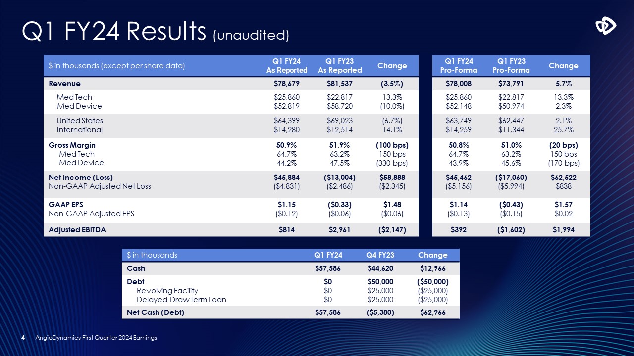 アンギオダイナミクス、2024年度第1四半期決算を発表;