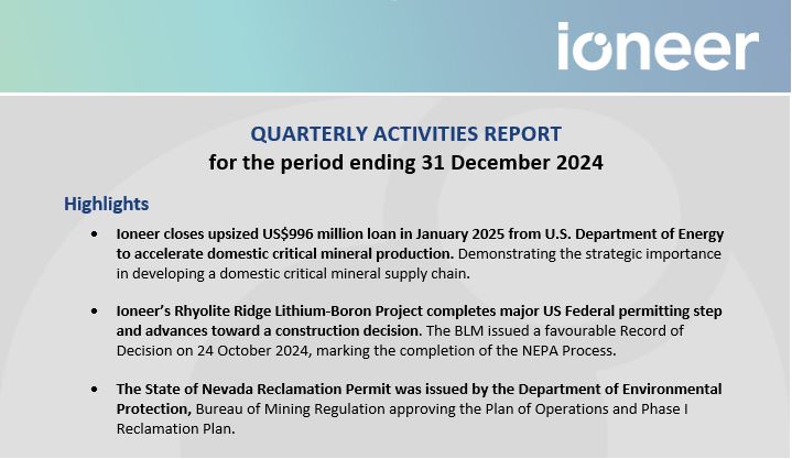 ASX LR 5.3.1: Exploration and Evaluation Expenditure during the quarter was US$2.5 million. Details of the exploration activity are set out in