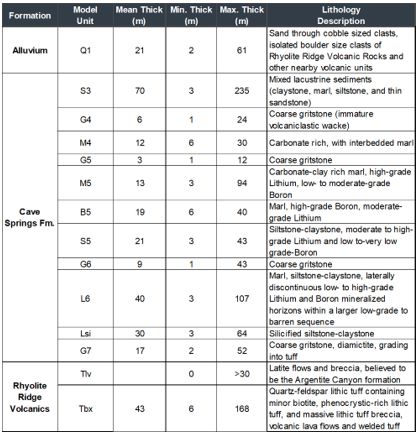 • Lithium Recovery for LoB-Li Processing Stream variable by lithology as follows: 78% in M5 unit, 85.7% in B5 unit, 88% in S5 unit, and 85% in L6 unit.