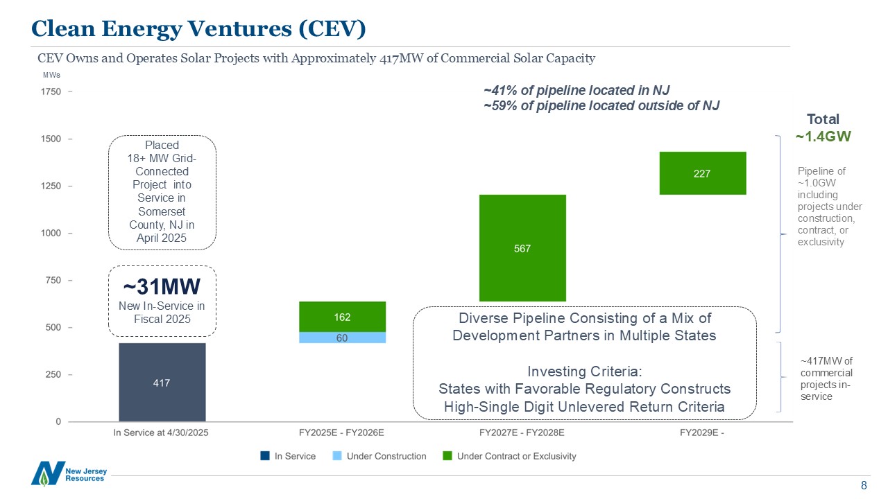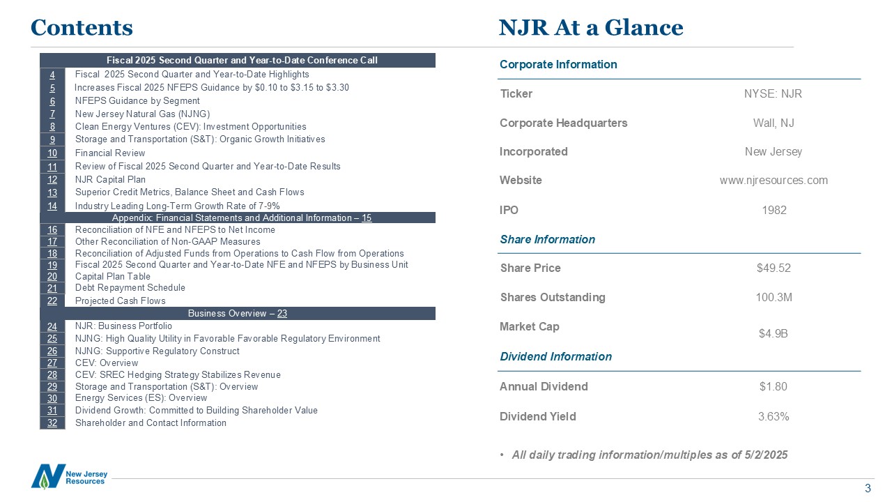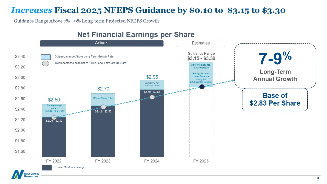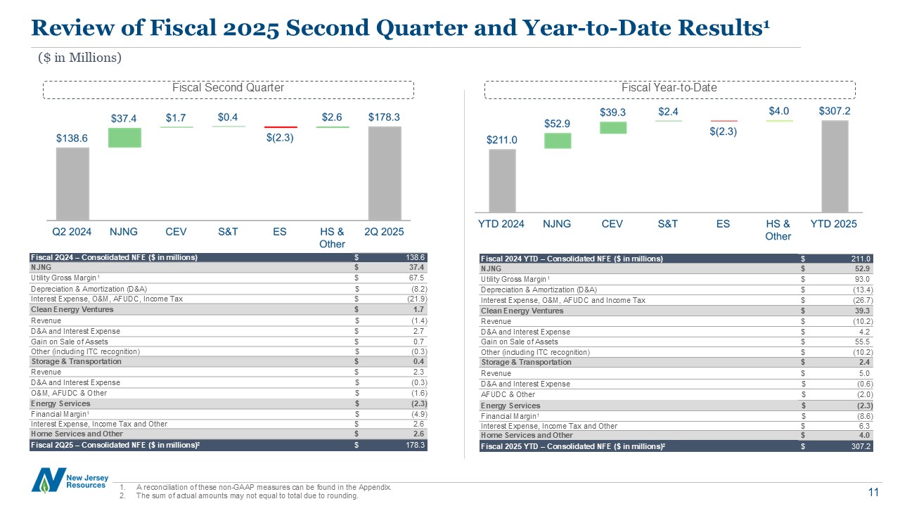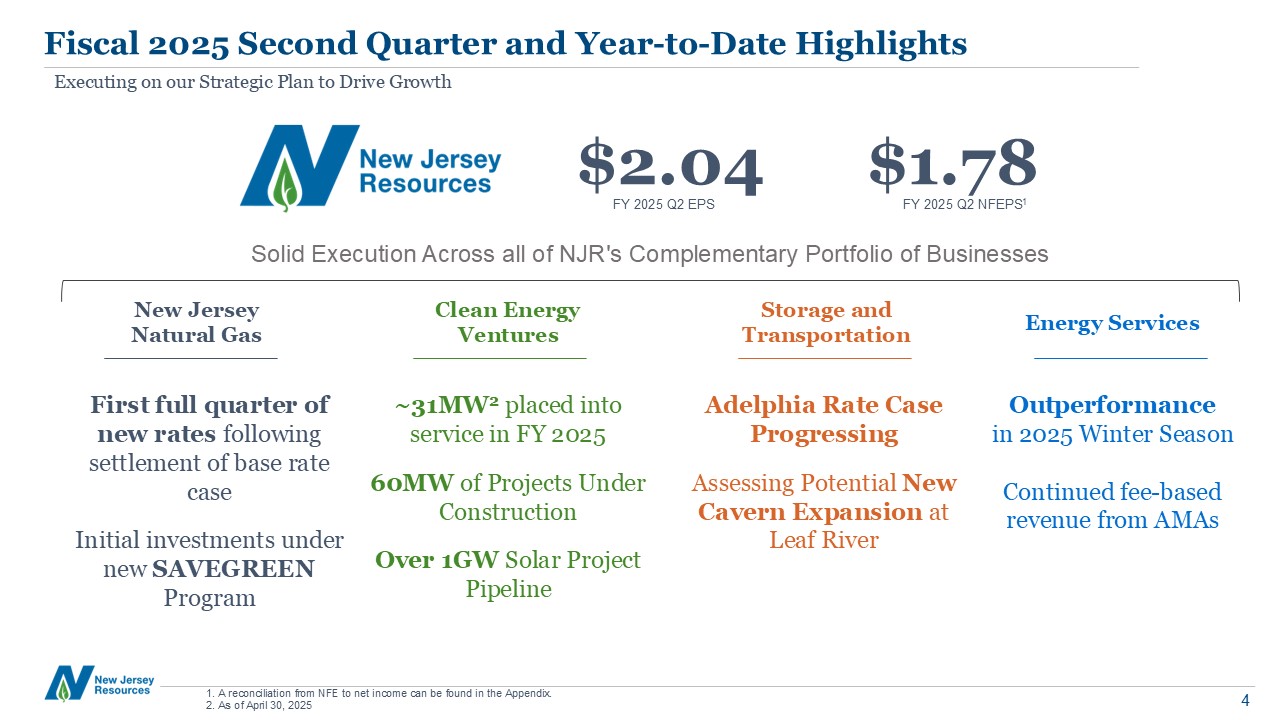 ニュージャージー州ウォール、2025年5月5日 - ニュージャージーリソーシズ・コーポレーション(NYSE: NJR)は本日、2025年3月31日を期末とする2025年度第2四半期の財務および営業成績を発表した。