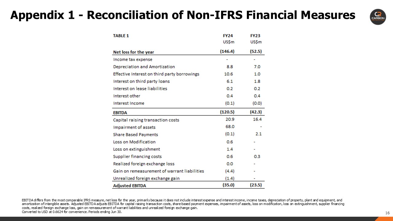 Adjusted EBITDA adjusts EBITDA for capital raising transaction costs, share-based payment expenses, impairment of assets, loss on modification, loss on extinguishment, supplier financing costs, realized foreign exchange loss, gain on