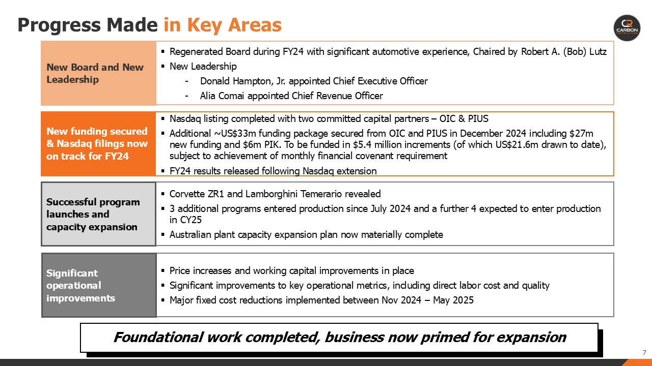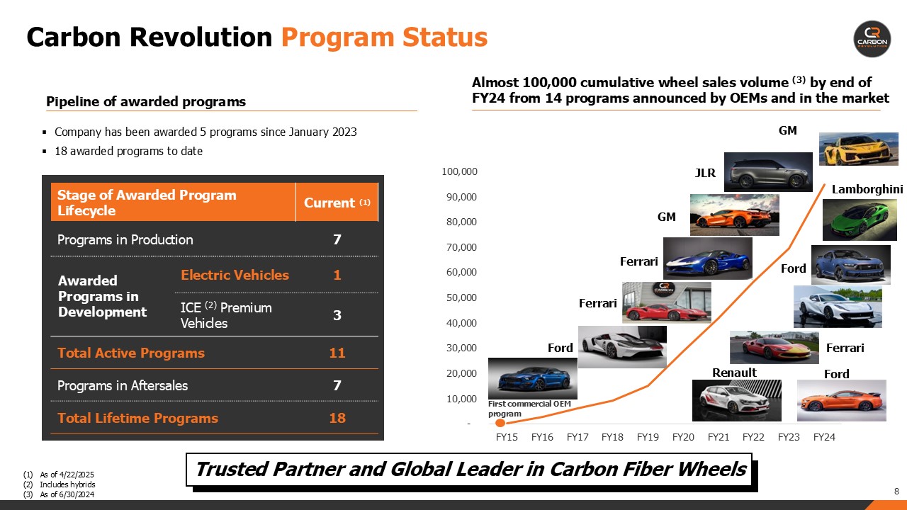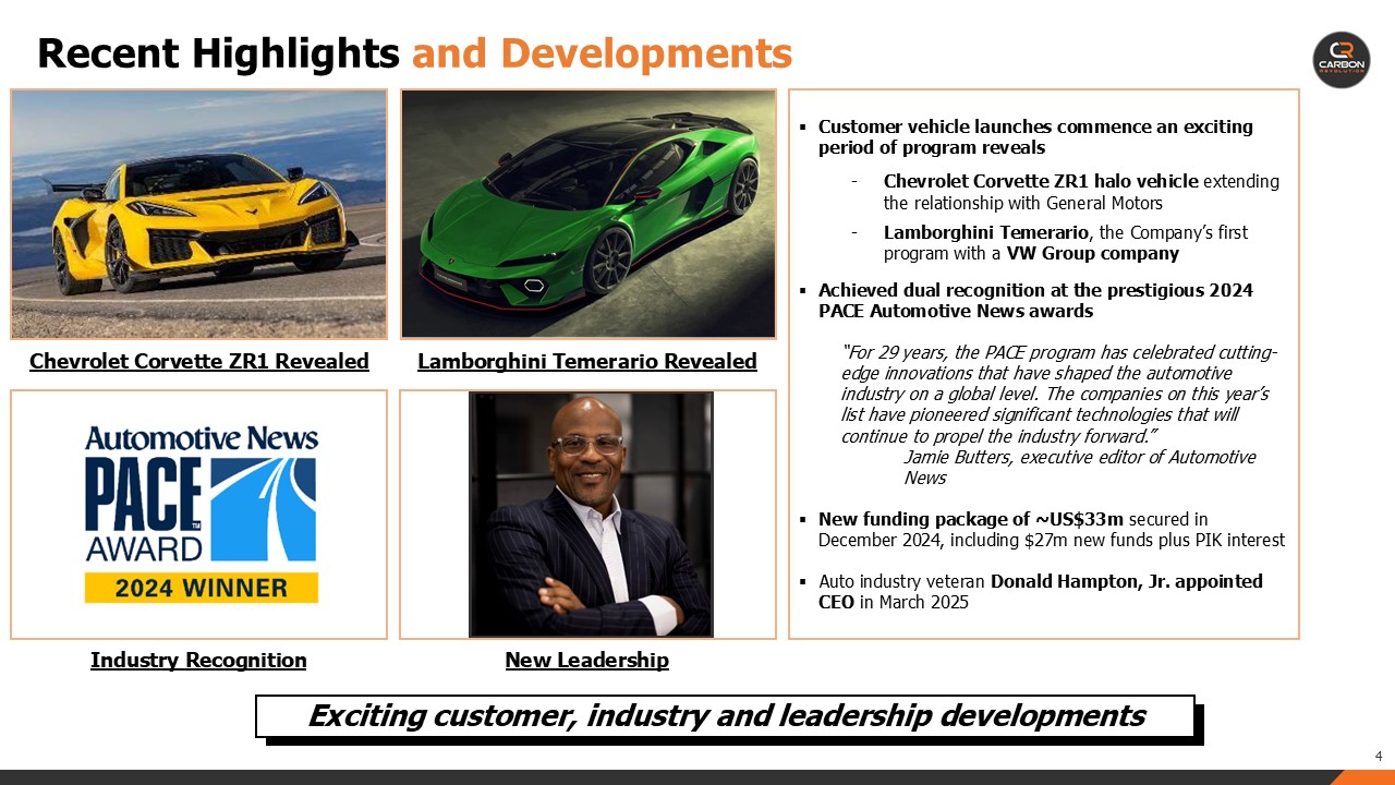 Key customer vehicle launches, including Chevrolet Corvette ZR1 and Lamborghini Temerario