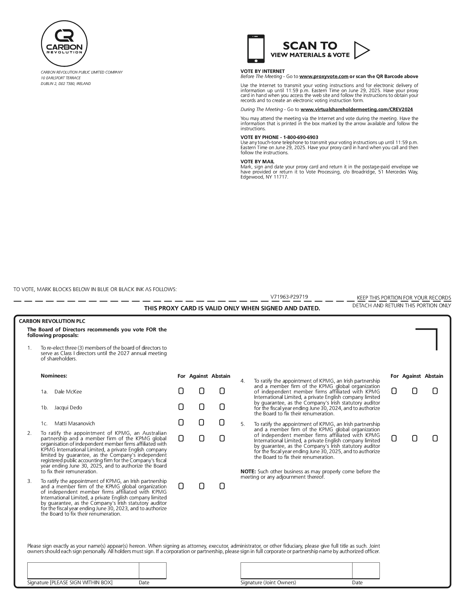 To ratify the appointment of KPMG, an Irish partnership and a member firm of the KPMG global organisation of independent member firms affiliated with KPMG International Limited, a private English company limited by guarantee, as the Company’s Irish statutory auditor for the fiscal year ending June 30, 2025, and to authorize the Board to fix their renumeration (“Proposal No. 5”); |
