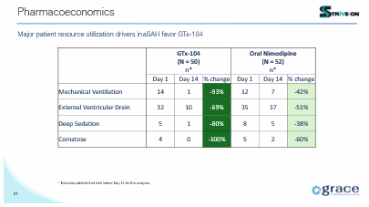the future prospects of our GTx-104 drug candidate, including but not limited to GTx-104’s potential to be administered to improve the management of hypotension in patients with aneurysmal subarachnoid hemorrhage (“aSAH”); the ability of GTx-104 to achieve a pharmacokinetic (“PK”) and safety profile similar to the oral form of nimodipine; GTx-104’s potential to provide improved bioavailability; GTx-104’s potential to achieve pharmacoeconomic benefit over the oral form of nimodipine; our ability to ultimately file a new drug application (“NDA”) for GTx-104 under Section 505(b)(2) of the FDCA; the acceptance of the NDA by the FDA; and the timing and ability to receive FDA approval for marketing GTx-104;