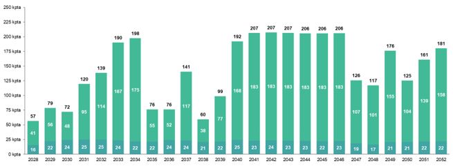 9% increase in annual boric acid production years 1-25 to 126,700 tpa