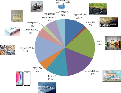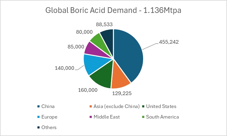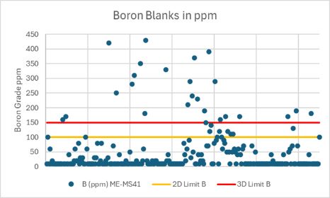 was only determined for the crude boric acid and high purity wet boric acid. Drying the boric acid led to an overestimation of moisture content since it
