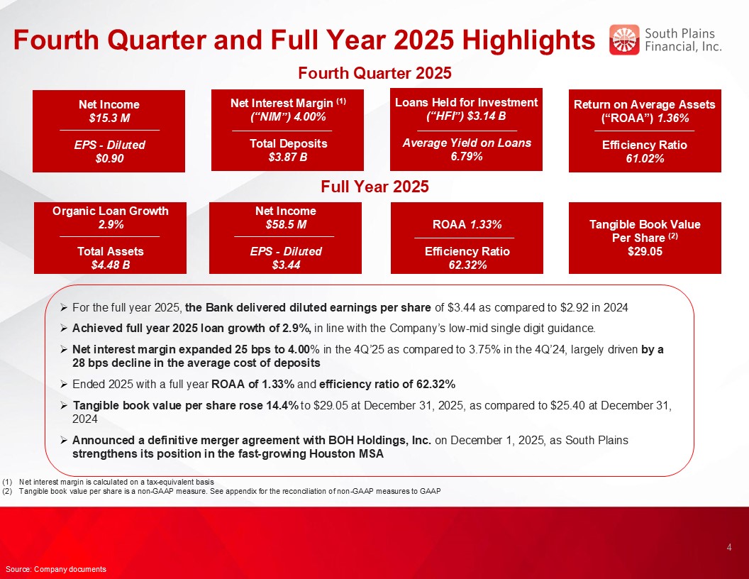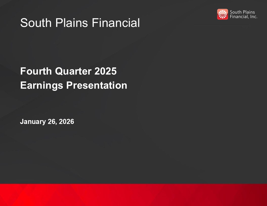 Press release, dated January 26, 2026, announcing fourth quarter and year-end 2025 financial results of South Plains Financial, Inc.