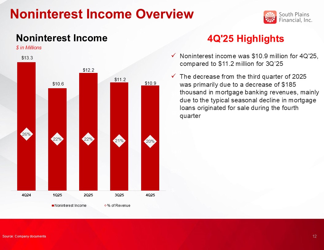 Tangible book value (non-GAAP) per share was $29.05 as of December 31, 2025, compared to $28.14 as of September 30, 2025 and $25.40 as of December 31, 2024.