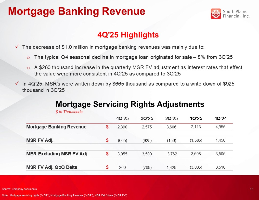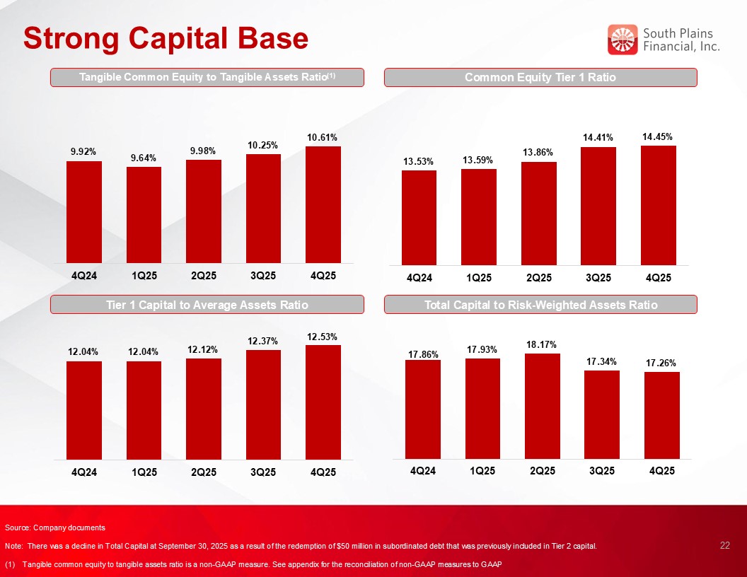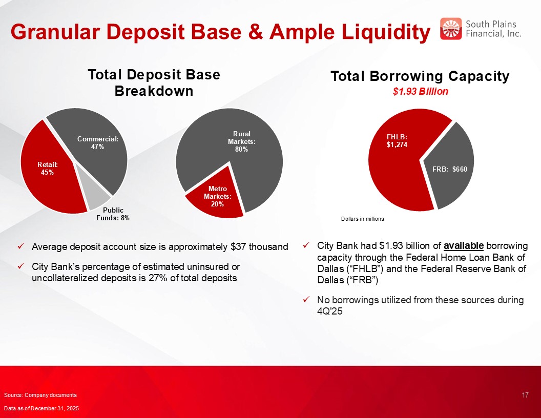 Return on average assets for the fourth quarter of 2025 was 1.36%, compared to 1.47% for the third quarter of 2025 and 1.53% for the fourth quarter of 2024.