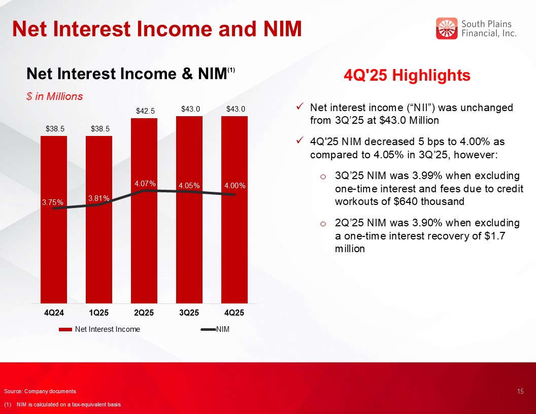 Net interest margin, on a tax-equivalent basis, was 4.00% for the fourth quarter of 2025, compared to 4.05% for the third quarter of 2025 and 3.75% for the fourth