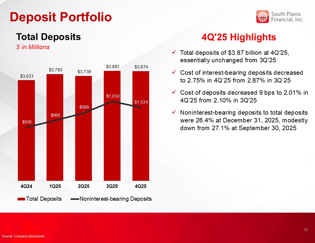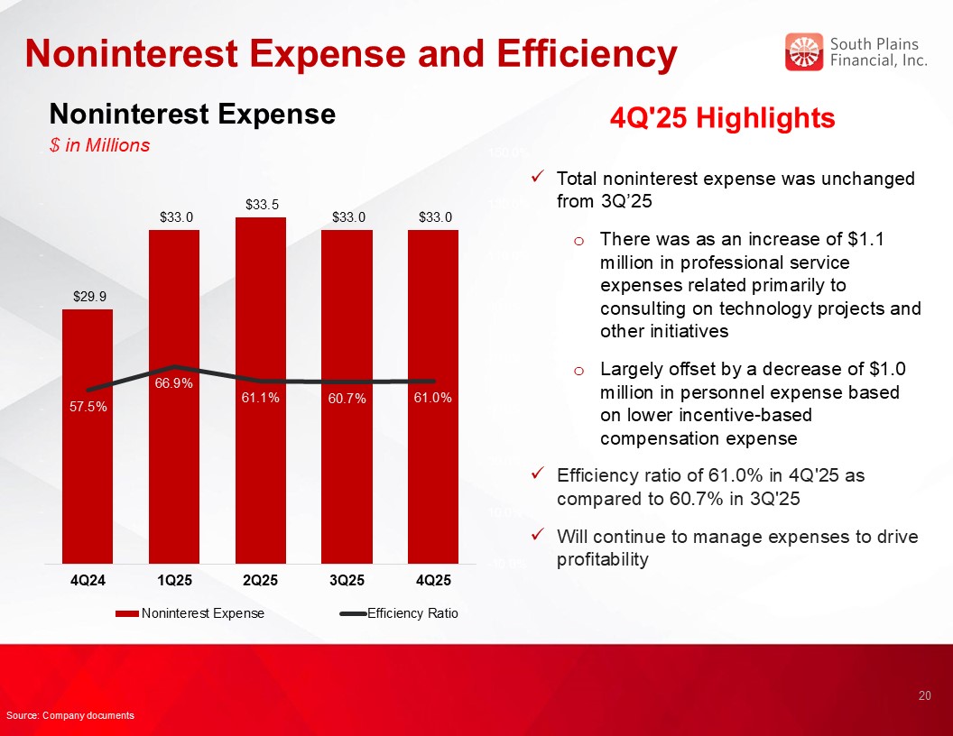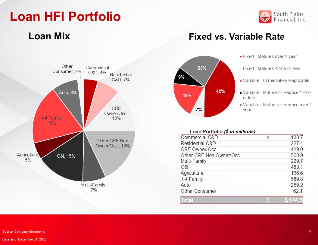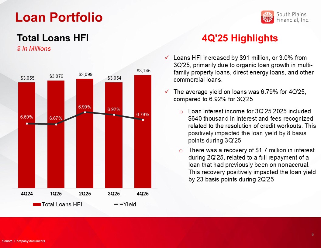 Loans held for investment grew $89.4 million, or 2.9%, during 2025.