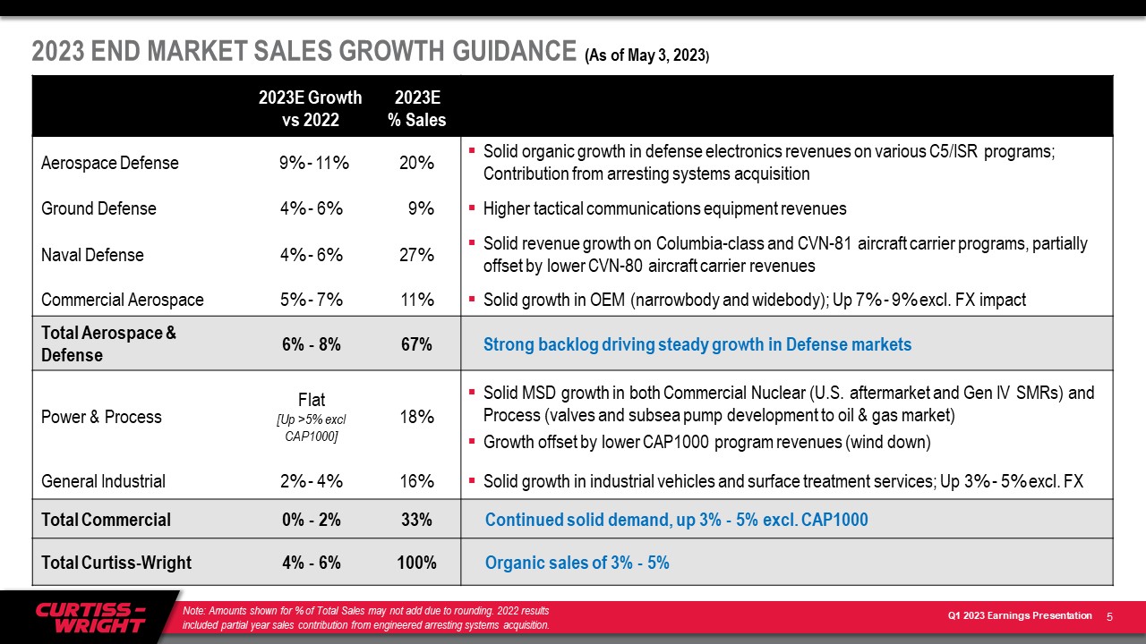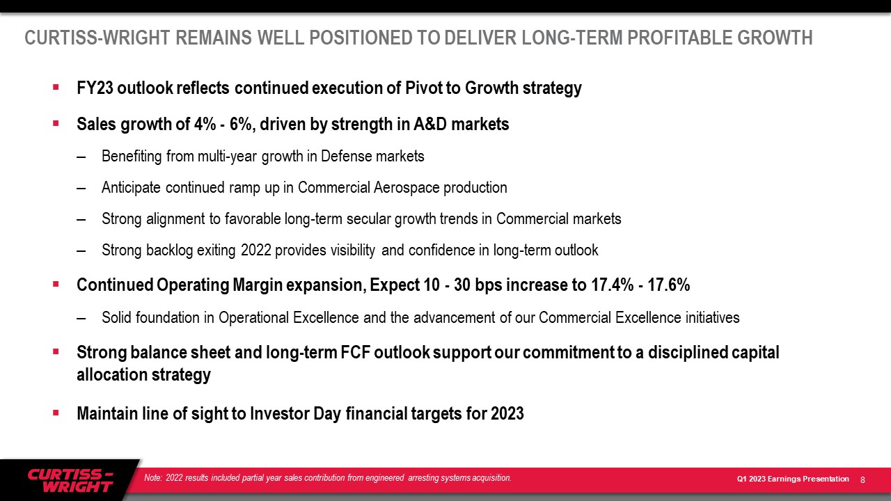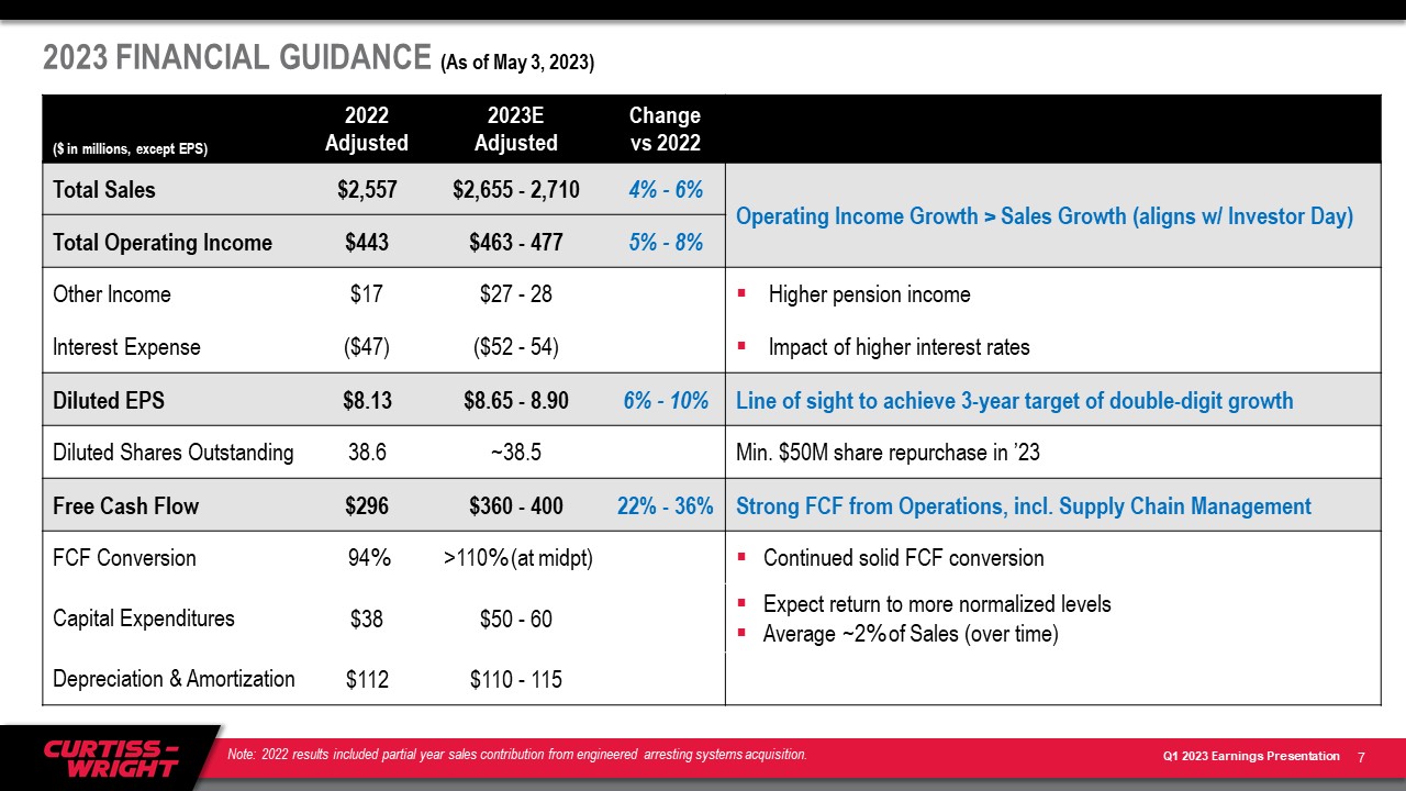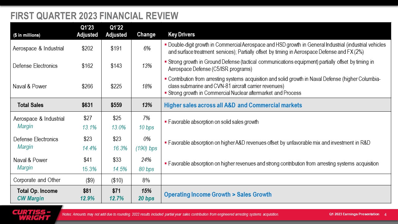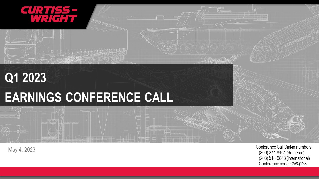 ノースカロライナ州デイビッドソン --(BUSINESS WIRE)--2023年5月3日-- カーティス・ライト・コーポレーション(NYSE:CW)は、2023年3月31日に終了した第1四半期の決算を報告します。