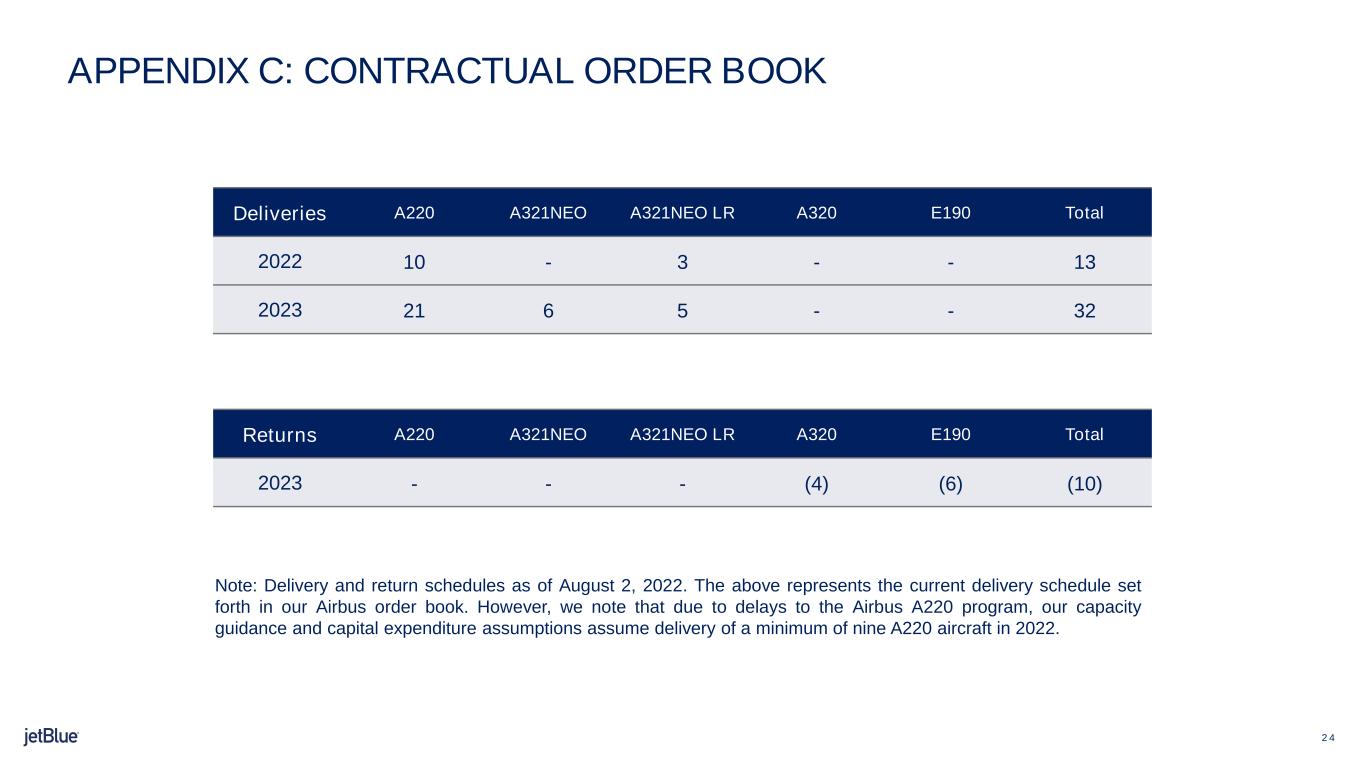 •When we reset our medium-term capacity plan back in the spring to reflect our industry’s output constraints, we highlighted some potential mitigating actions to optimize our footprint for this new reality. Today, JetBlue announced the acceleration of its E190 retirement schedule, pulling it forward by over a year to mid 2025 versus prior plans to exit the fleet by year-end 2026.