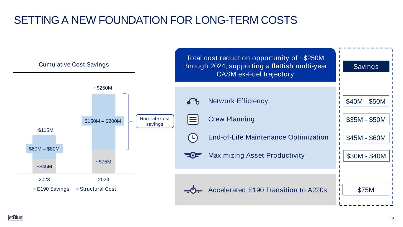 -構造的コストプログラムとE190の早期退役により、2024年までに合計約2億5千万ドルのコスト削減を見込んでいます。