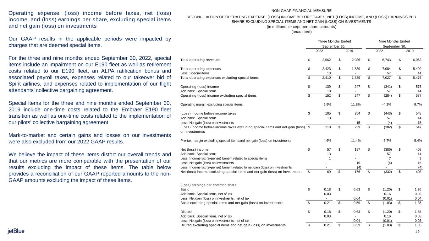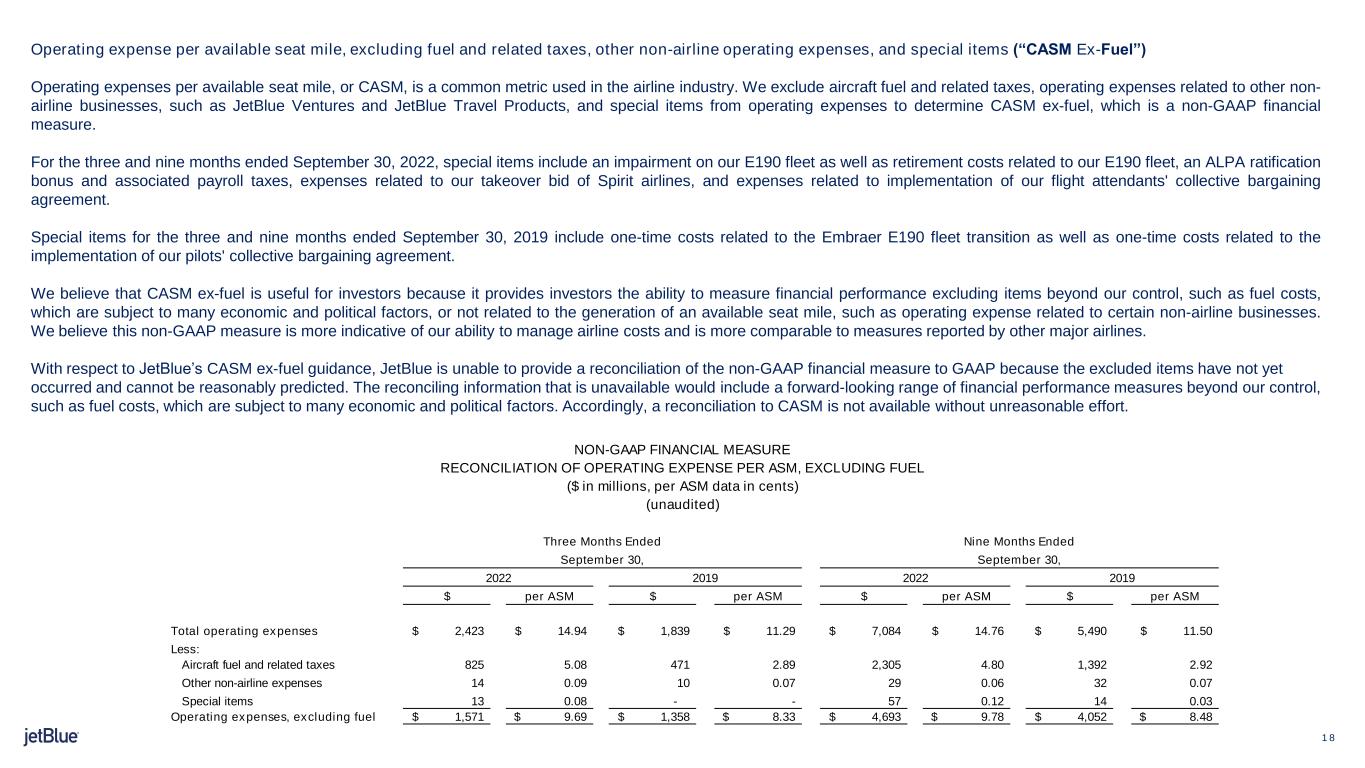For further details see the Third Quarter 2022 Earnings Presentation available via the internet at http://investor.jetblue.com.