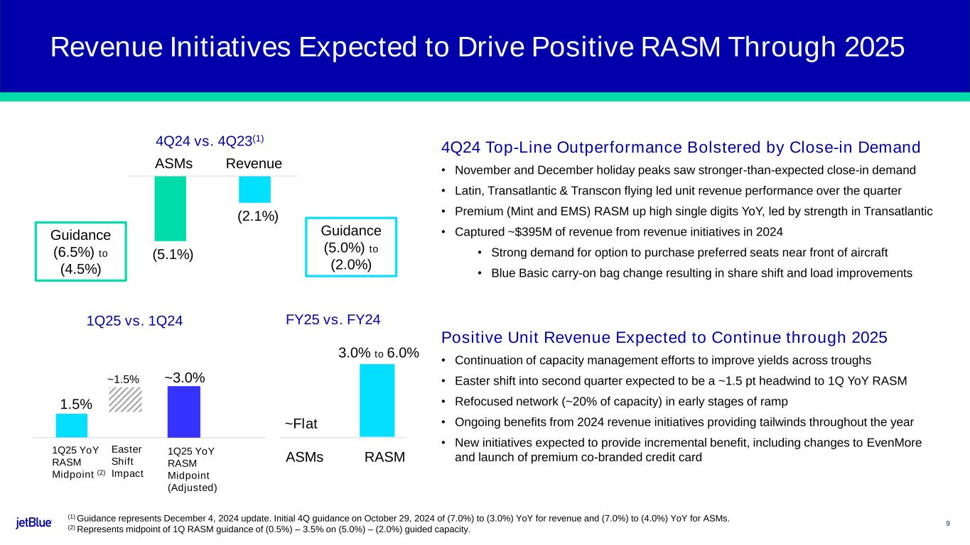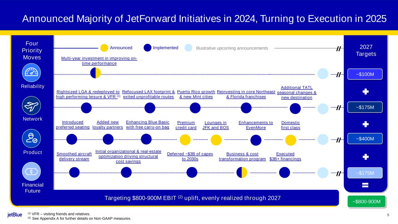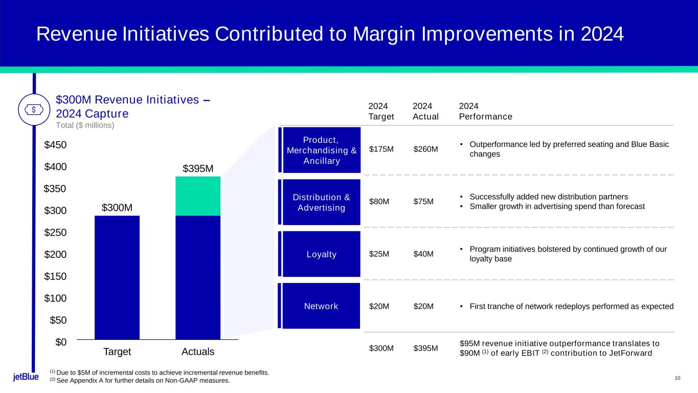 •2024 revenue initiatives achieved $395 million of top-line benefit, exceeding our $300 million target by $95 million. This contributed $90 million of EBIT (1) to the JetForward program in 2024, which was originally forecasted to be realized in 2025.