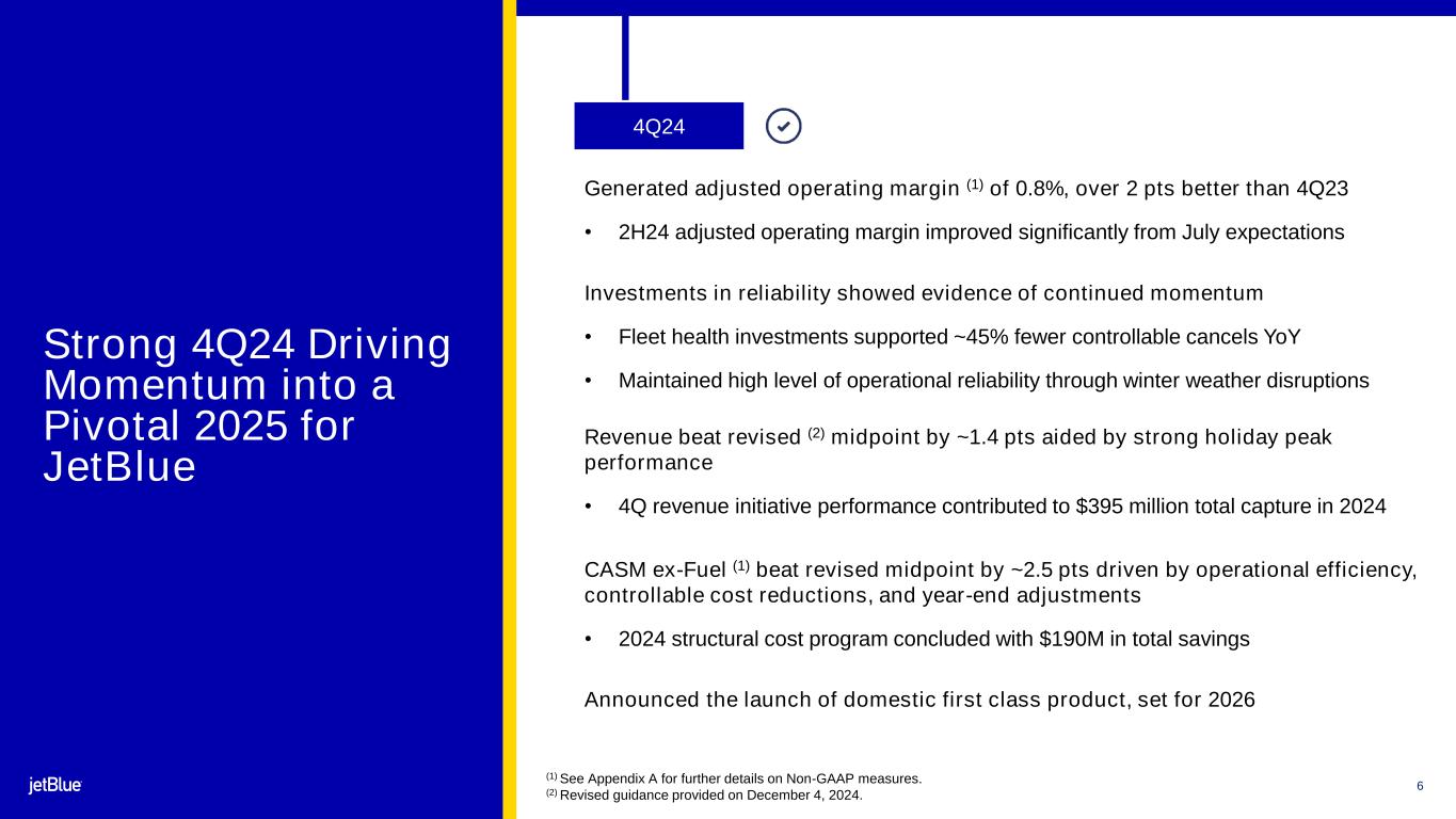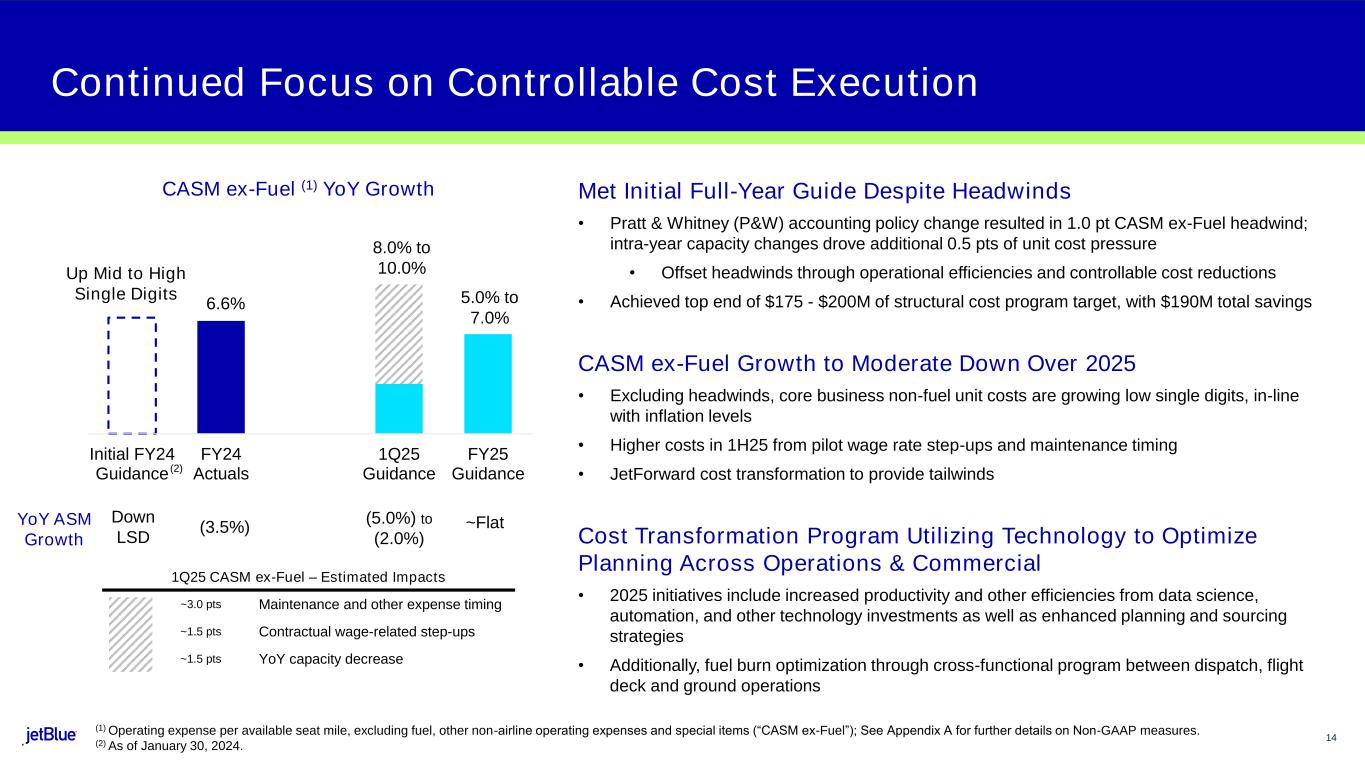"Looking ahead to 2025, we are laser-focused on executing JetForward and building on the momentum from 2024. While this year will not come without its challenges, our strategy is in place to tackle those obstacles head-on. With a healthy revenue backdrop, continued cost control and incremental earnings from JetForward, we believe we are well-positioned to deliver on our goal of achieving a positive operating margin for the full year."