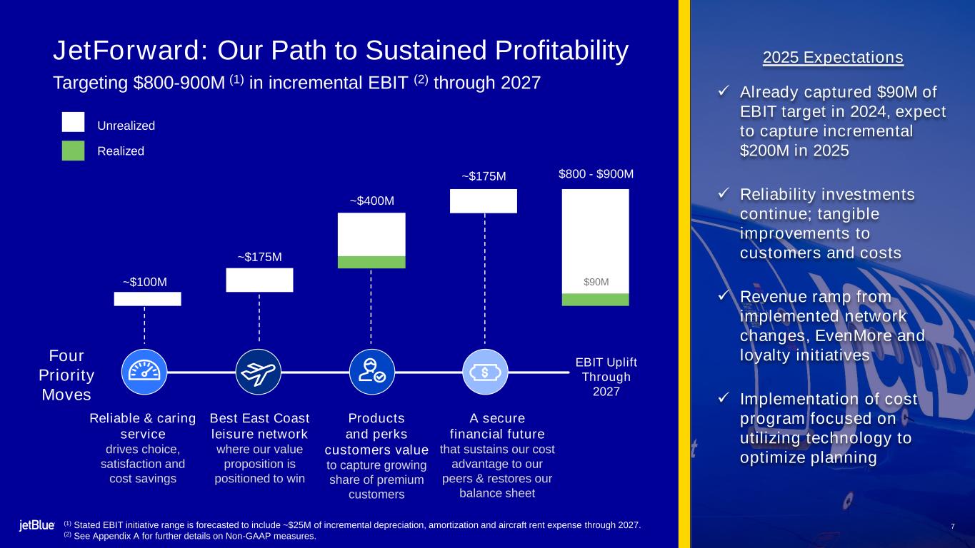 JetForward on track, helping to drive positive adjusted operating margin (1) outlook in 2025