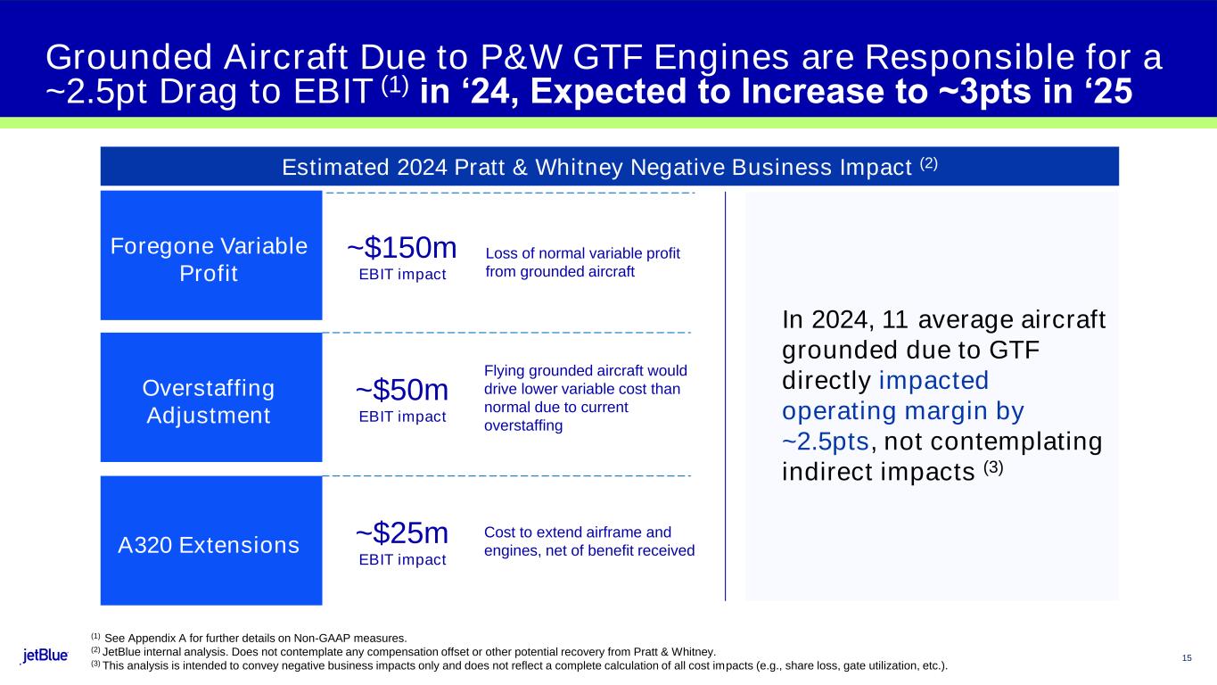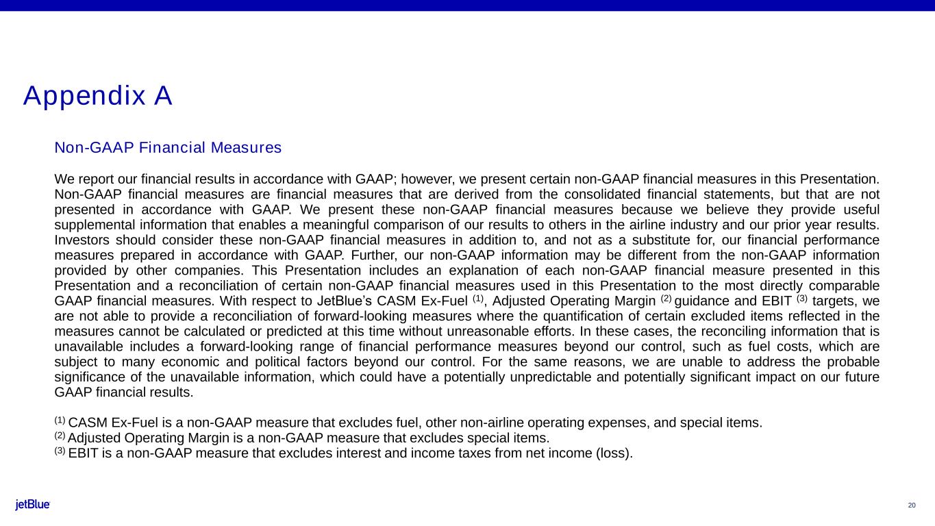 (1)Non-GAAP financial measure; Note A provides a reconciliation of each non-GAAP financial measure used in this release to the most directly comparable GAAP financial measure and explains the reasons management believes that presentation of these non-GAAP financial measures provides useful information to investors regarding JetBlue's financial condition and results of operations. In addition, refer to Note A for further details on non-GAAP forward-looking information.