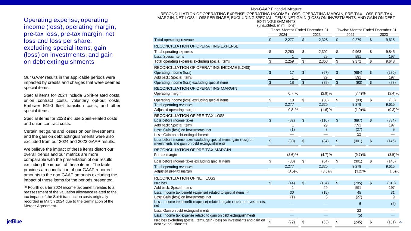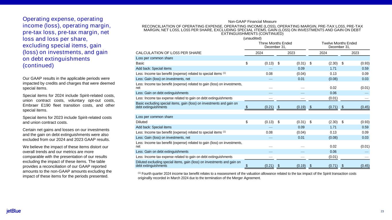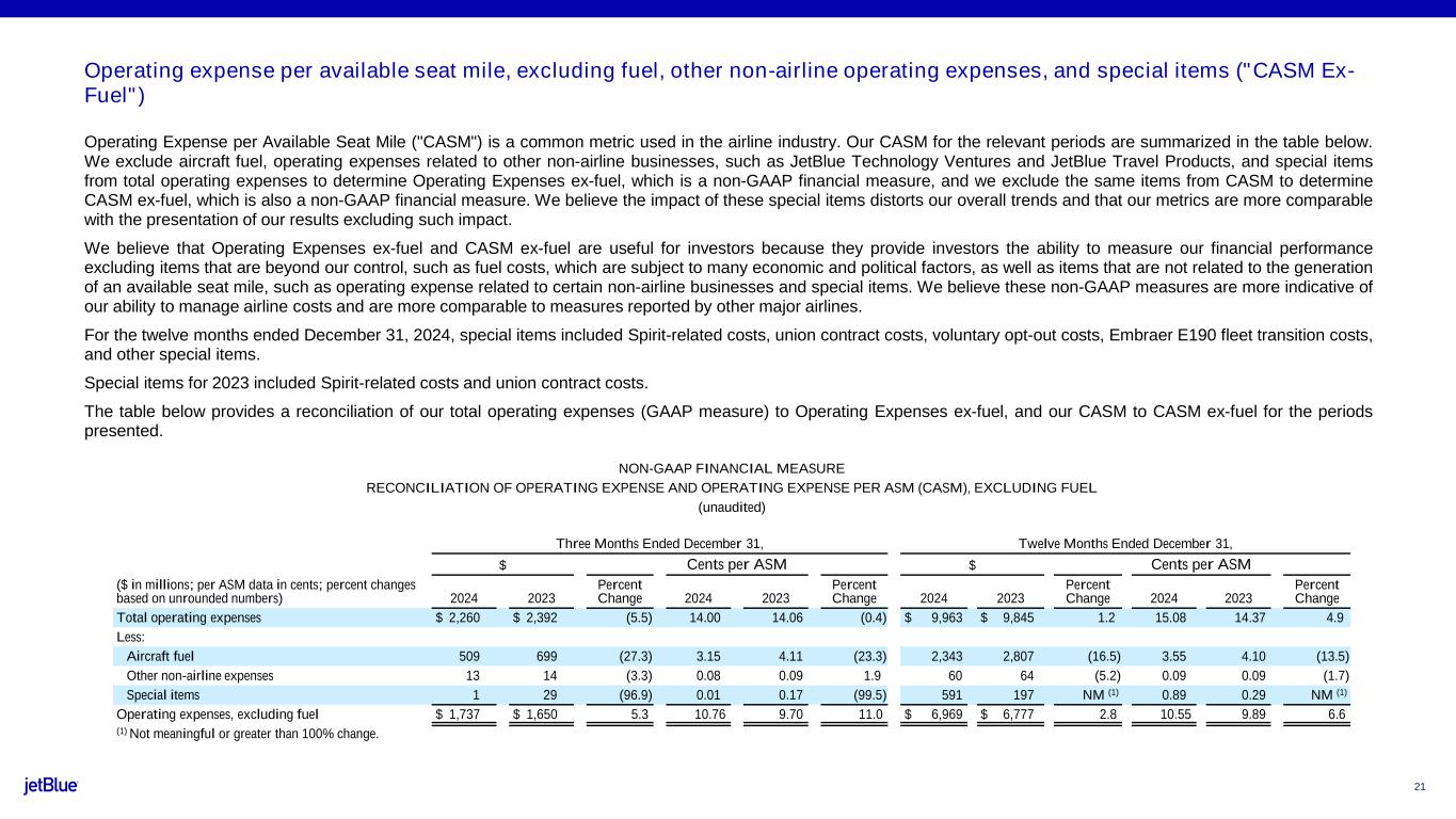For further details, see the fourth quarter 2024 Earnings Presentation available via the internet at http://investor.jetblue.com.