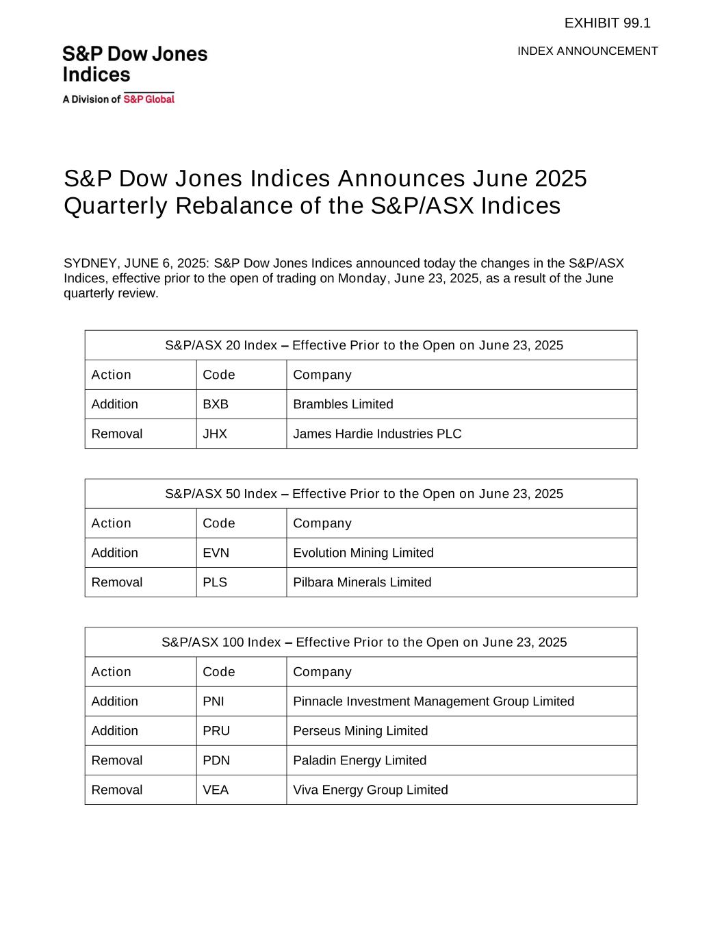 Forward-looking statements are based on the Company’s current expectations, estimates and assumptions and because forward-looking statements address future results, events and conditions, they, by their very nature, involve inherent risks and uncertainties, many of which are unforeseeable and beyond the Company’s control. Such known and unknown risks, uncertainties and other factors may cause actual results, performance or other achievements to differ materially from the anticipated results, performance or achievements expressed, projected or implied by these forward-looking statements. These factors, some of which are discussed under “Risk Factors” in Section 3 of the Form 20-F filed with the Securities and Exchange Commission on 20 May 2025, include, but are not limited to: all matters relating to or arising out of the prior manufacture of products that contained asbestos by current and former Company subsidiaries; required contributions to AICF, any shortfall in AICF funding and the effect of currency exchange rate movements on the amount recorded in the Company’s financial statements as an asbestos liability; compliance with and changes in tax laws and treatments; competition and product pricing in the markets in which the Company operates; the consequences of product failures or defects; exposure to environmental, asbestos, putative consumer class action or other legal proceedings; general economic and market conditions; the supply and cost of raw materials; possible increases in competition and the potential that competitors could copy the Company’s products; compliance with and changes in environmental and health and safety laws; risks of conducting business internationally; compliance with and changes in laws and regulations; currency exchange risks; dependence on customer preference and the concentration of the Company’s customer base; dependence on residential and commercial construction markets; the effect of adverse changes in climate or weather patterns; use of accounting estimates; the proposed AZEK merger; and all other risks identified in the Company’s reports filed with Australian, Irish and US securities regulatory agencies and exchanges (as appropriate). The Company cautions you that the foregoing list of factors is not exhaustive and that other risks and uncertainties may cause actual results to differ materially from those referenced in the Company’s forward-looking statements. Forward-looking statements speak only as of the date they are made and are statements of the Company’s current expectations concerning future results, events and conditions. The Company assumes no obligation to update any forward-looking statements or information except as required by law.