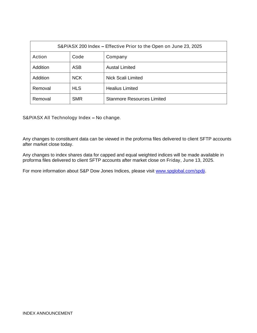 S&P DJI Announces June 2025 Quarterly Rebalance |