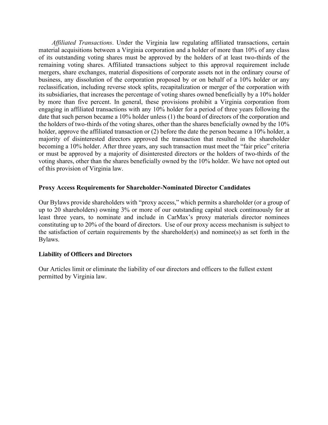 CarMax, Inc.2025年度年次株主総会招集通知および委任状は、参照により本フォーム10-KのパートIIIに組み込まれています。