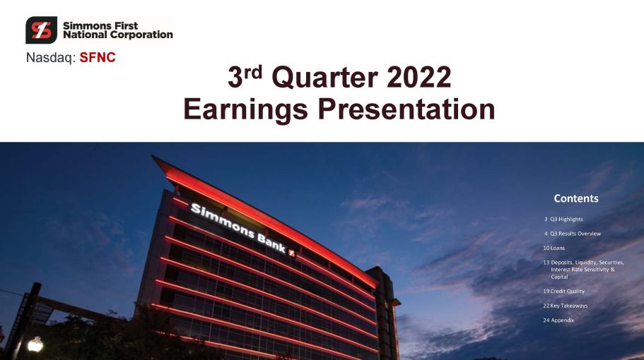 シモンズ・ファースト・ナショナル・コーポレーション、2022年第3四半期の収益は8060万ドル、希薄化後1株当たり利益は0.63ドル