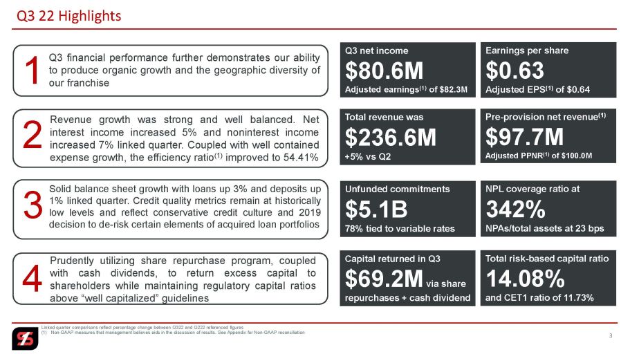 | Financial Highlights | 3Q22 | 2Q22 | 3Q21 | Third Quarter Highlights | ||||