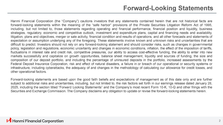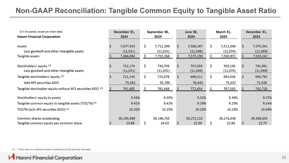 Hanmiの詳細については、当行のウェブサイト(www.hanmi.com)および米国証券取引委員会(SEC)のウェブサイト(www.sec.gov)のForm 8-Kによる最新報告書を通じて入手可能な、2024年第4四半期の投資家向け最新情報(および補足財務情報)をご参照ください。また、特定の非GAAPベースの財務指標の表示に関する詳細については、「非GAAPベースの財務指標」をご参照ください。