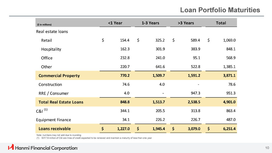 | Loans receivable (1) | $ | 6,103,264 | $ | 6,112,324 | $ | 6,089,440 | $ | 6,137,888 | $ | 6,071,644 | -0.1 | % | 0.5 | % | |||||||||||||