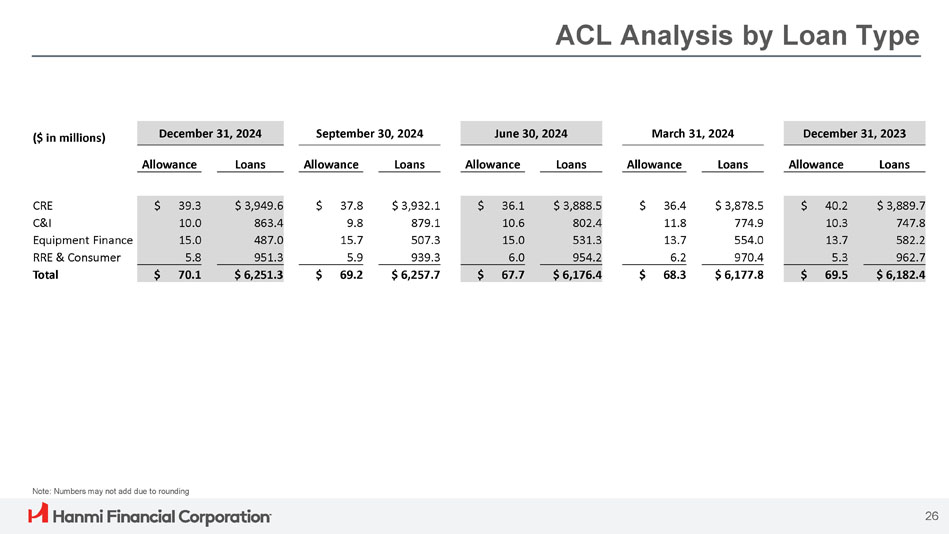 2024年12月31日現在の貸倒引当金控除前貸付金は62億5,000万ドルで、2024年9月30日現在の62億6,000万ドルから減少した。