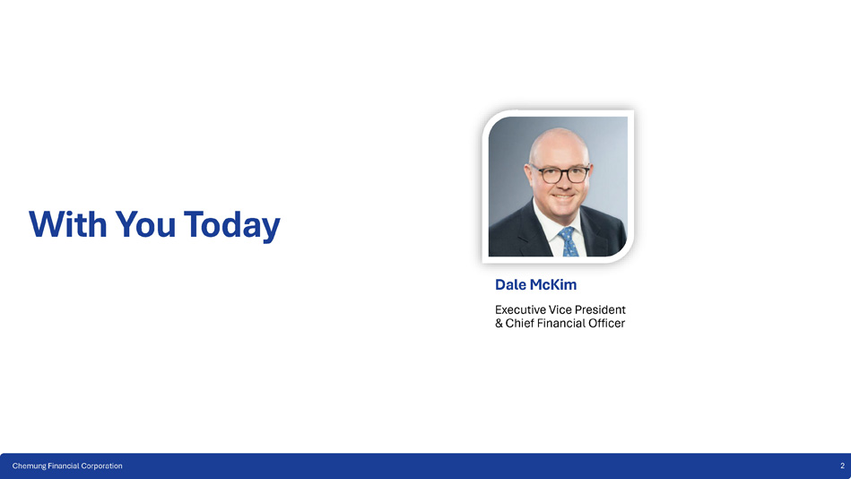 2025 Raymond James Small Cap Investor Meetings Chemung Financial Corporation Chemung Financial Corporation With You Today 2 Dale McKim Executive Vice President & Chief Financial Officer