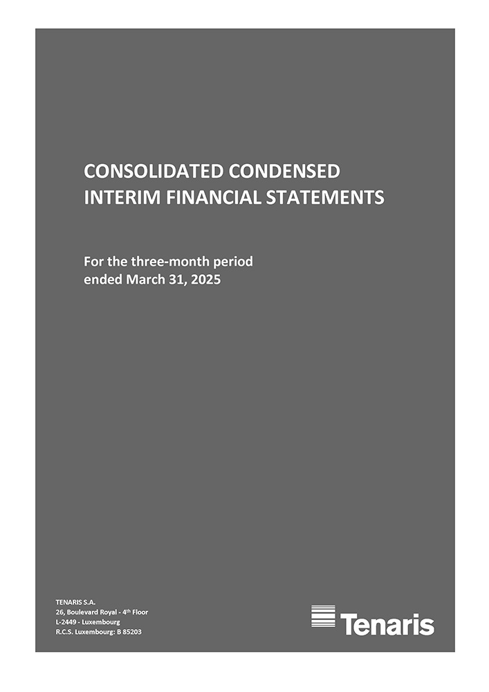 This report contains Tenaris S.A. Consolidated Condensed Interim Financial Statements for the three-month period ended March 31, 2025.