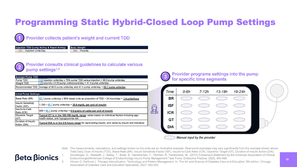 The images shown are for illustrative purposes only. Actual product specifications may vary. Russell, S.J., et al. (2022) A Multicenter Randomized Trial of a Bionic Pancreas in Type 1 Diabetes. The New England Journal of Medicine. 387:1161 – 1172. Damiano et al. (2024) Glycemic and CGM Outcomes are nearly independent of the frequency of user engagement with the iLet in the Bionic Pancreas Pivotal Trial and real - world setting. https://www.betabionics.com/wp - content/uploads/iLet - Glycemic - and - CGM - outcomes - vs - user - engagement.pdf 1. 2.