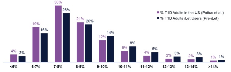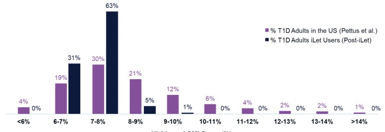 Figure 2. HbA1c of Adults with T1D in the U.S. Versus Baseline HbA1c of iLet Adult Users with T1D