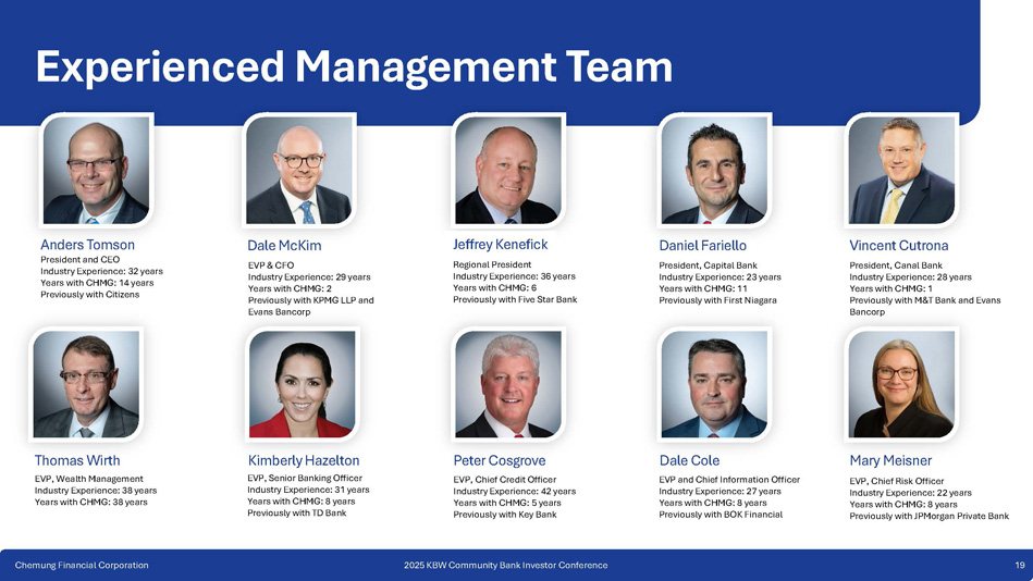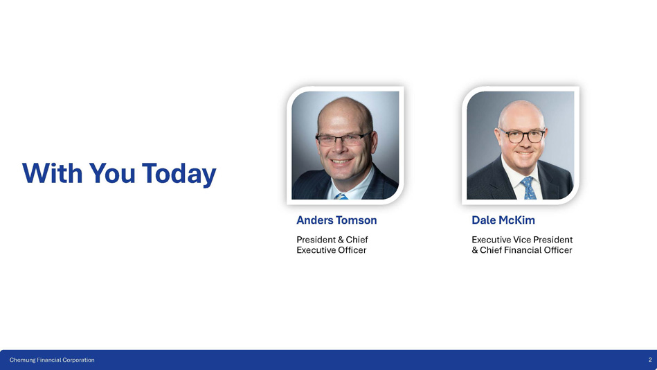 2025 KBW Community Bank Investor Conference Chemung Financial Corporation Chemung Financial Corporation With You Today 2 Anders Tomson President & Chief Executive Officer Dale McKim Executive Vice President & Chief Financial Officer