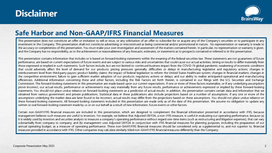 A New Era in Brain Disorder Treatment Corporate Presentation Nasdaq/TASE: BWAY August 2025