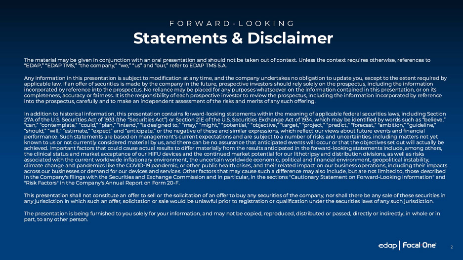 Statements & Disclaimer F O R W A R D - L O O K I N G 2
