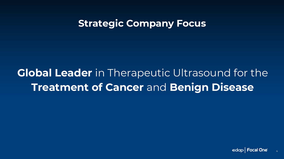2010 20.5 M (2) Rectal Endometriosis 1.5 M Prostate Cancer (1) 11.3 M (3) BPH (Benign Prostatic Hyperplasia) 510,992 (1) Pancreatic Cancer 866,136 (1) Liver Cancer 51.4 M (5) Thyroid Nodules 2.3 M (1) Breast Cancer 8.3 M (4) Breast Fibroadenoma 94 Million Global cases of BPH in 2019 (1) 15 Million U.S. men are affected by BPH/LUTS (2) 600,000 U.S. men aged 65+ newly diagnosed annually (3) Leveraging Expertise in Robotic HIFU and Prostate for BPH 12.2 Million men actively managed for BPH/LUTS: • 55% under Drug Management (4) • 35% under Watchful Waiting (4) • 300,000+ Active Surgical Treatments (5) Focal One Robotic HIFU technology has the potential to provide a non - invasive option that can safely treat BPH - related symptoms while avoiding the side effects of standard surgical treatments. 10,000s PCa treatments constitute a robust foundation to build upon for a BPH strategy (1) Fentahun et al. The Lancet Healthy Longevity. 2022 (2) Egan K B. Urologic Clinics of North America. 2016 (3) Urologic Diseases in America. 2024. National Institutes of Health, National Institute of Diabetes and Digestive and Kidney Diseases. 2024 (4) Vuichoud et al. Can J Urol.