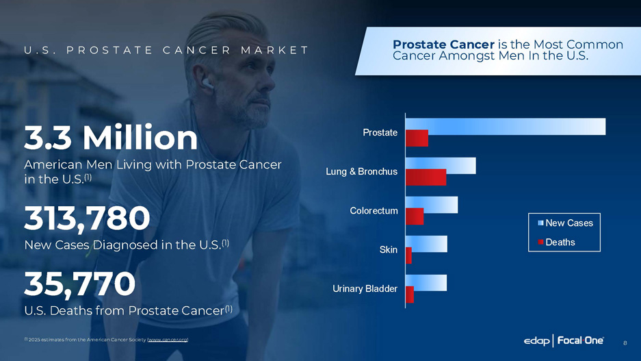 3.3 Million American Men Living with Prostate Cancer in the U.S. (1) 313,780 New Cases Diagnosed in the U.S. (1) 35,770 U.S. Deaths from Prostate Cancer (1) U . S . P R O S T A T E C A N C E R M A R K E T Prostate Cancer is the Most Common Cancer Amongst Men In the U.S.