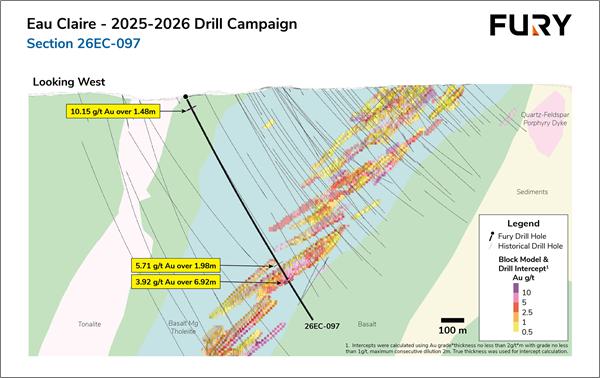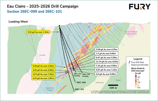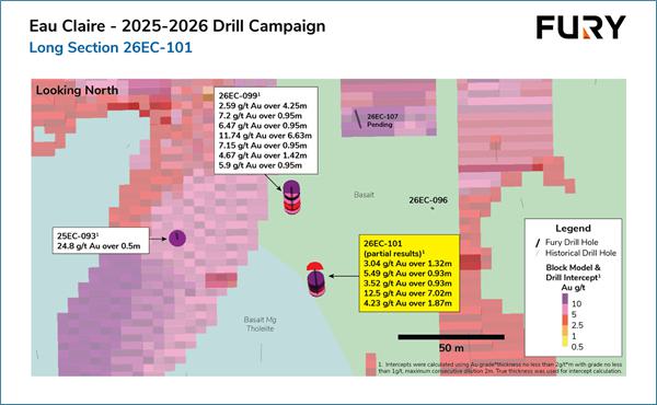 Fury Intercepts 12.50 g/t Gold over 7.02 Metres Outside the Eau Claire Block Model