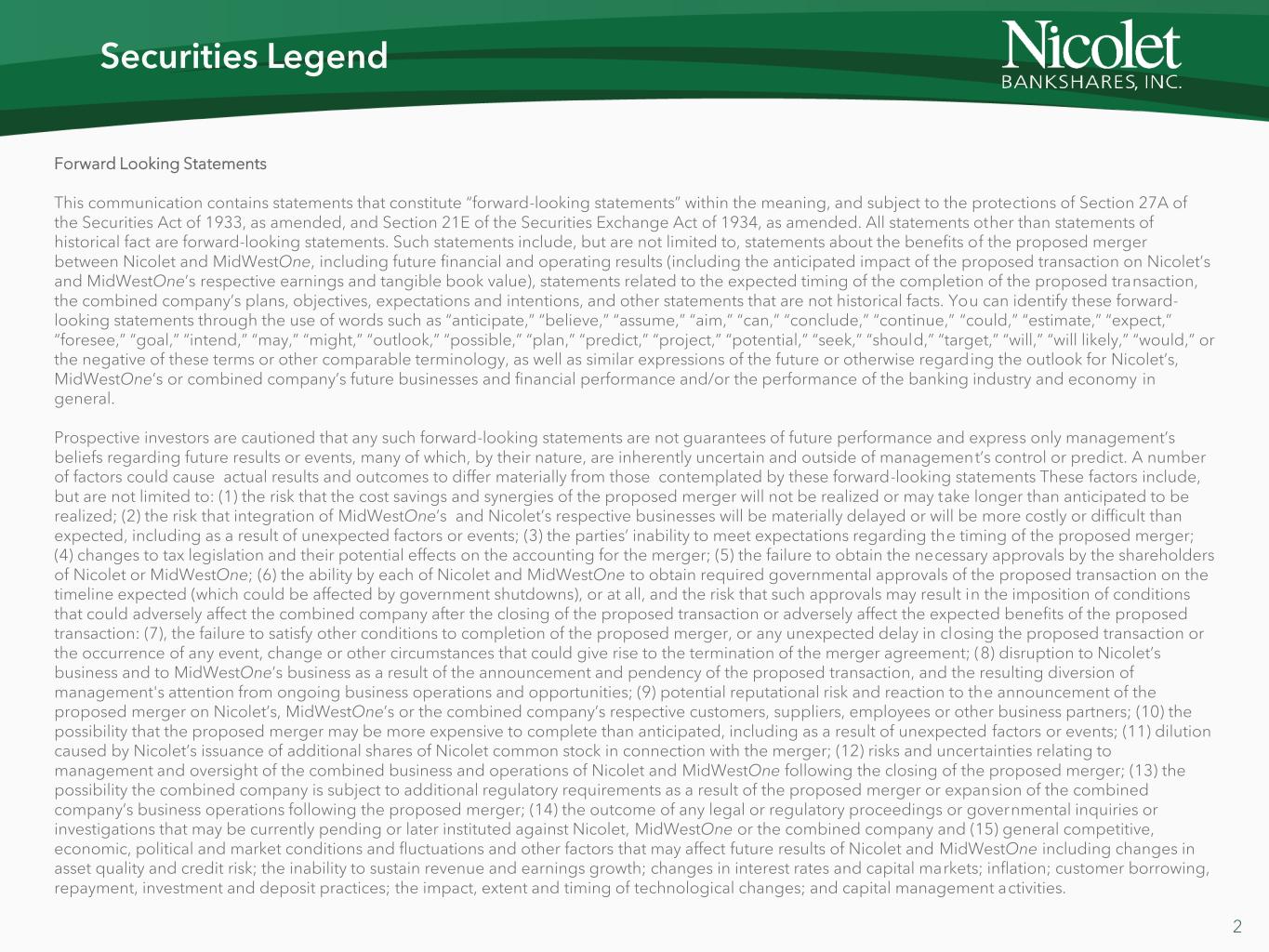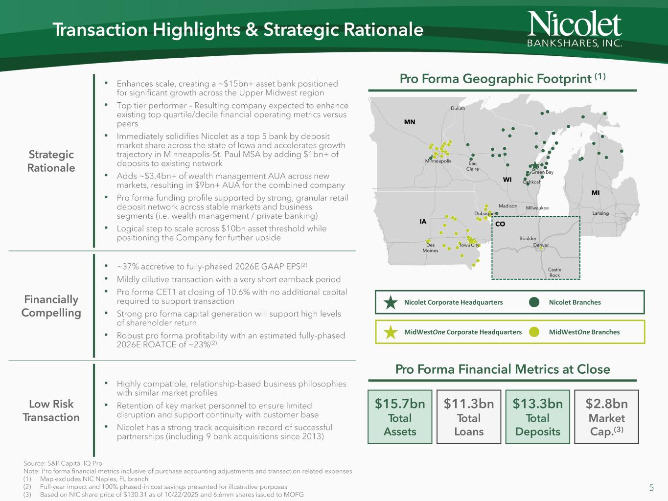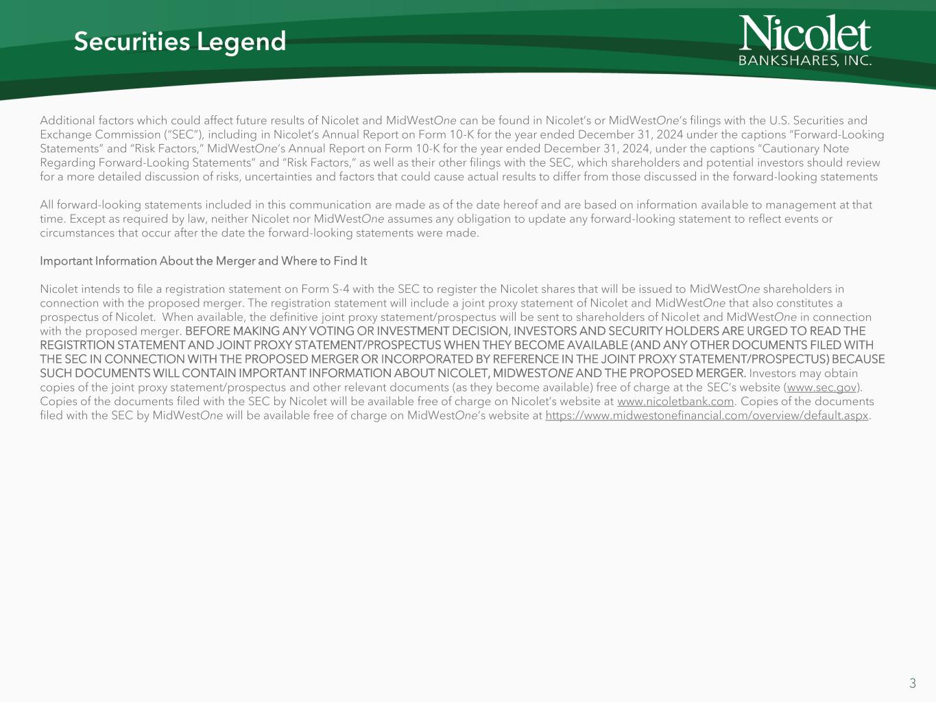 WHEREAS, MidwestOne Financial Group, Inc. (“MOFG”), which owns all of the outstanding shares of MidWestOne Bank, and Nicolet Bankshares, Inc. (“Nicolet”), which owns all of the outstanding shares of Nicolet Bank, have entered into an Agreement and Plan of Merger, dated as of October 23, 2025 (the “Holding Company Agreement”), which, among other things, provides for the merger of MOFG with and into Nicolet, with Nicolet as the surviving corporation, all subject to the terms and conditions of such Holding Company Agreement (the “HC Merger”);