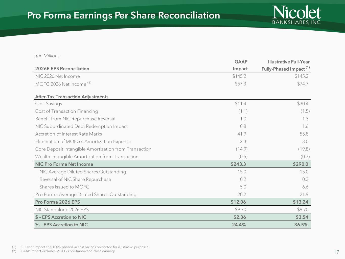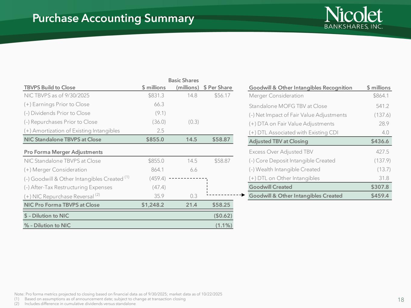 Upon the Effective Time, the then outstanding shares of Nicolet Bank’s common stock shall continue to remain outstanding shares of Nicolet Bank’s common stock, all of which shall be unaffected by the Bank Merger and shall continue to be owned by Nicolet.
