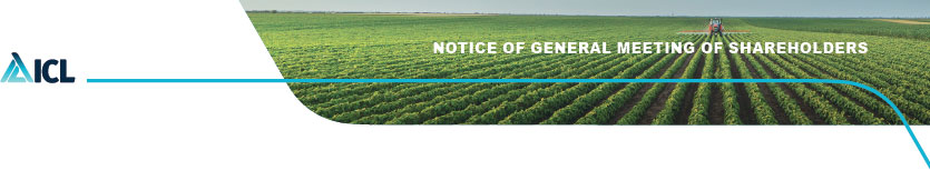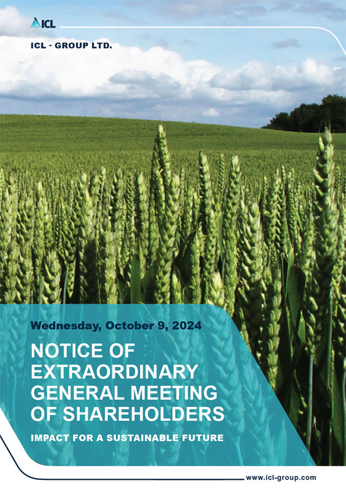 Notice is hereby given that an Extraordinary General Meeting of Shareholders (the “Meeting”) of ICL Group Ltd. (the “Company”) will be held on Wednesday, October 9, 2024, at 10:00 a.m. (Israel time), at the offices of the Company, Millennium Tower, 23 Aranha Street, 22nd Floor, Tel Aviv, Israel, or via Microsoft Teams at https://teams.microsoft.com/dl/launcher/launcher.html?url=%2F_%23%2Fl%2Fmeetup-join%2F19%3Ameeting_MmIyYTJhYTAtMjIyYS00ZmNhLWFkOGYtYTAxOWFiYmZiNTYz%40thread.v2%2F0%3Fcontext%3D%257b%2522Tid%2522% 253a%2522802762d2-02c4-4677-98ba-54060a234204%2522%252c%2522Oid%2522%253a%252222e45515-b4cf-46f7-bd8e-02d2af6f2692%2522%257d%26anon%3Dtrue&type=meetup-join&deeplinkId=241f324e-5294-4bfd-8ca5-40b4de11b 223&directDl=true&msLaunch=true&enableMobilePage=true&suppressPrompt=true, for the following purposes: