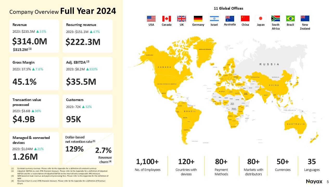In March, Nayax completed a note and warrant offering and raised $133.0 million.