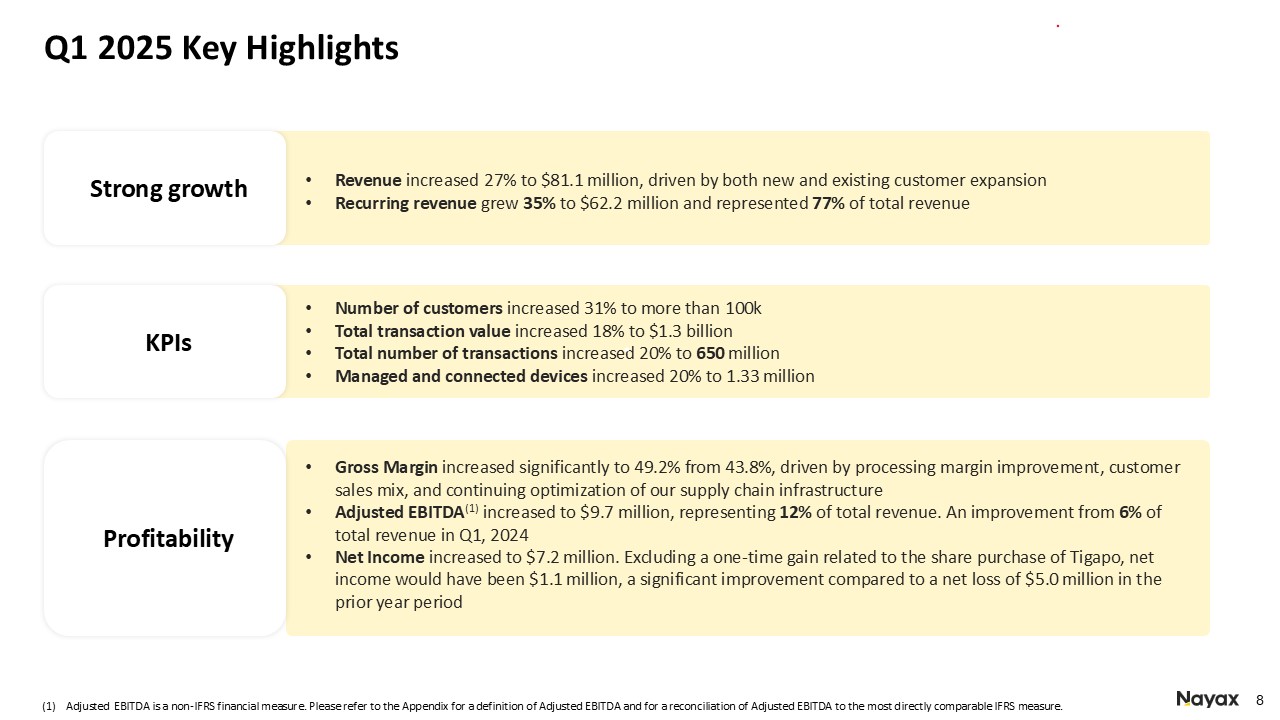 Recurring revenue from SaaS and payment processing fees grew 35%, demonstrating the strength and resilience of our business model. Recurring revenue represented 77% of total revenue.