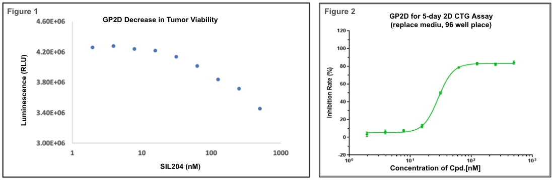 Notably, as can be seen in the right hand graph below (figure 2), the Company observed an inhibition rate of approximately 90% in the presence of SIL204 in GP2D