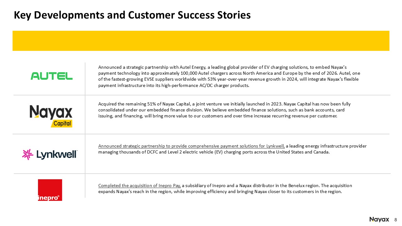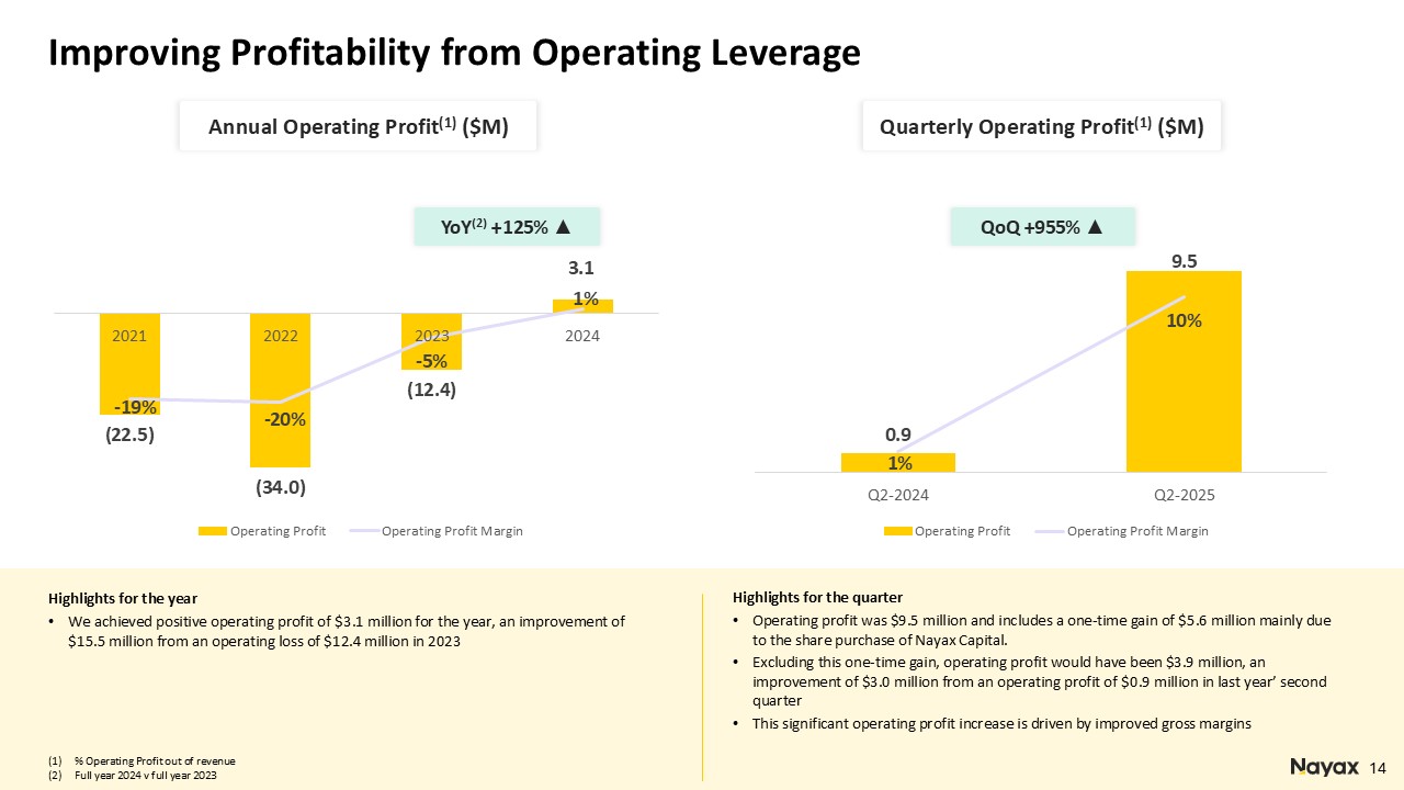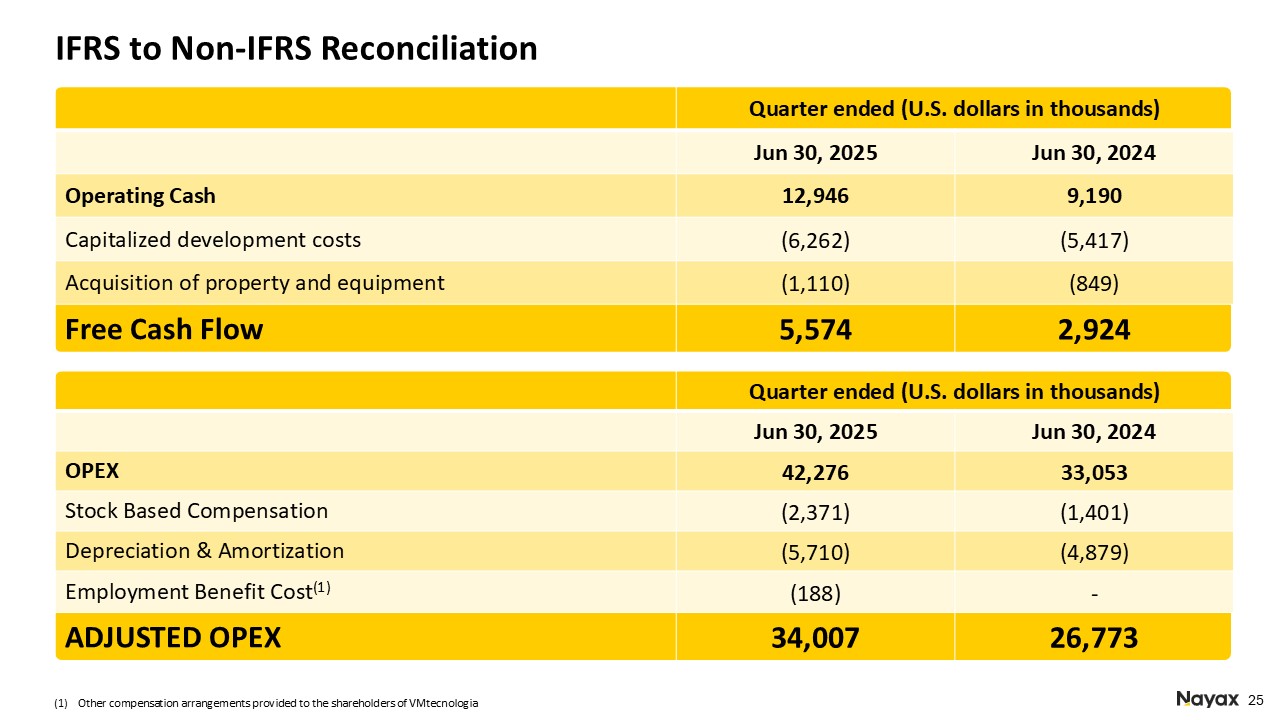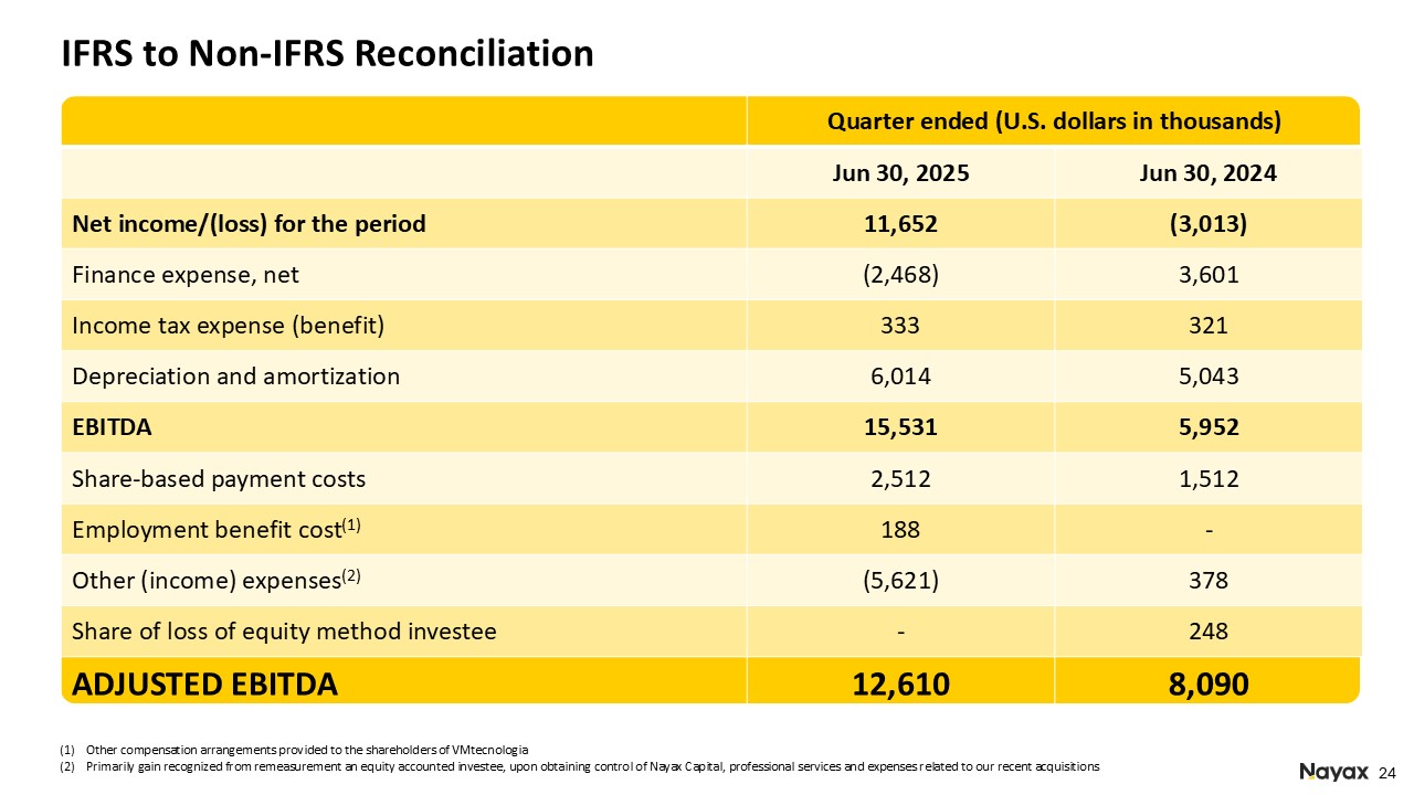 Operating profit was $9.5 million which includes a one-time gain of $5.6 million mainly due to the share purchase of the remaining 51% of Nayax Capital, an embedded financing solution for operators, previously held as a joint venture.