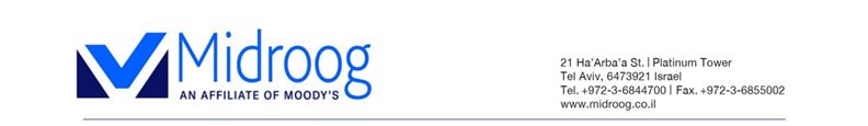 Information") was delivered to Midroog by sources (including the rated entity) that it considers credible. Midroog is not responsible for the accuracy of the Information and presents it as provided by the sources. Midroog exercises reasonable means,